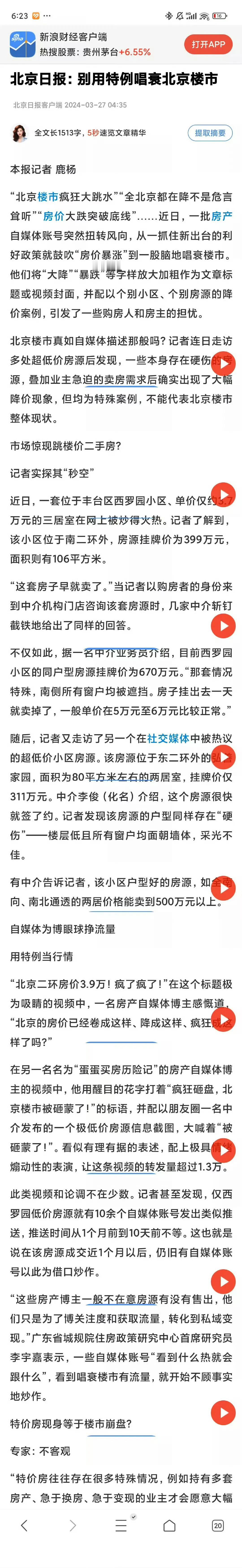 2024年3月,自媒体上出现了北京南二环外西罗园出现均价3万多的房子,北京日报还专门发了调查评论《别用特例唱衰北京楼市》,结果现在这个小区成交3.5万是常态[哈欠] 房地产的未来怎么拯救?