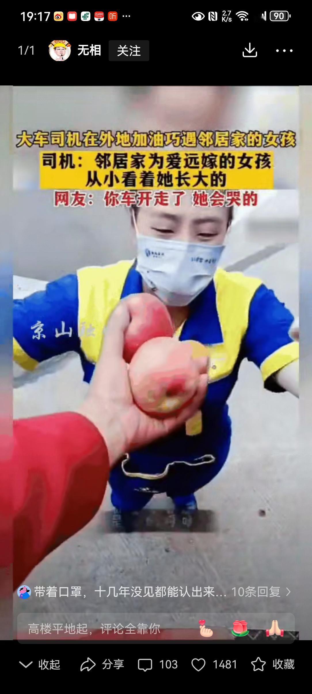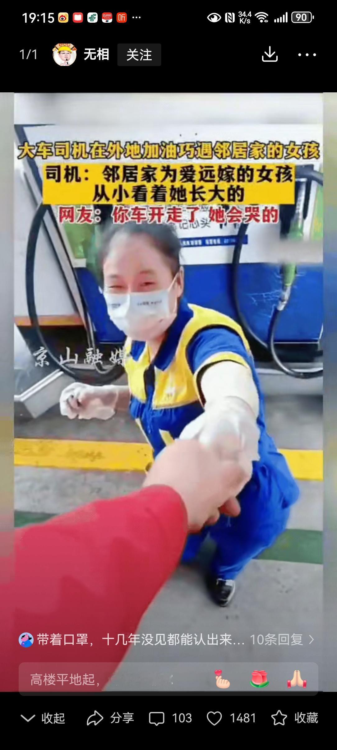 河南新乡的大车司机黄大哥,在湖北的加油站,看见加油女工似曾相识,一时想不起在什么地方见过,当时女工戴着口罩,于是就打了个招呼 。 口罩遮了大半张脸,只露出双透着股倔强的眼睛,可那递油枪的手势,竟让他想起了老邻居家的丫头。 “妹子,听你说话,是河南口音?”老黄试探着问,方向盘还攥在手里没松开。 女工愣了愣,抬手扯下口罩,眼角的细纹藏不住岁月的痕迹。老黄猛地拍了下大腿:“娟娟?我是你黄叔啊!” 谁能想到,这竟是分别二十多年的重逢。当年娟娟十九岁,顶着全家反对远嫁湖北,此后便断了老家的音讯。 老黄从驾驶室摸出两个苹果,那是出发前老伴塞的,说路上保平安。“拿着,咱老家的味道,平平安安比啥都强。” 娟娟攥着苹果,指腹蹭到果皮上的白霜,眼圈立刻就红了。她在这加油站干了八年,天天见南来北往的车,却第一次遇见“娘家人”。 老黄踩油门时,后视镜里的娟娟还在挥手,袖口擦着眼睛。远嫁不是漂泊,他乡遇故知,不如他乡遇“家人”,一句乡音就暖透了半生。