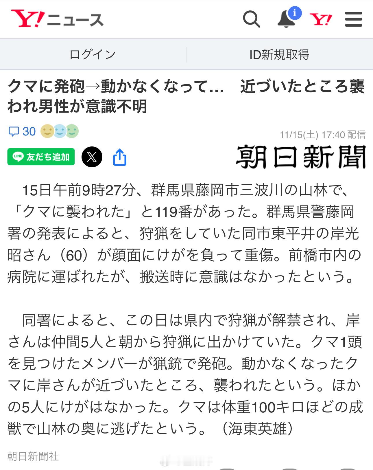 说6个日本人上山猎熊,遇到一头200斤的黑熊🐻以后果断开枪,熊中弹后躺地上一动不动了,其中1个日本人上去摸尸体,结果被装死的熊反杀....堪比钟离假死的顶级智斗这一块