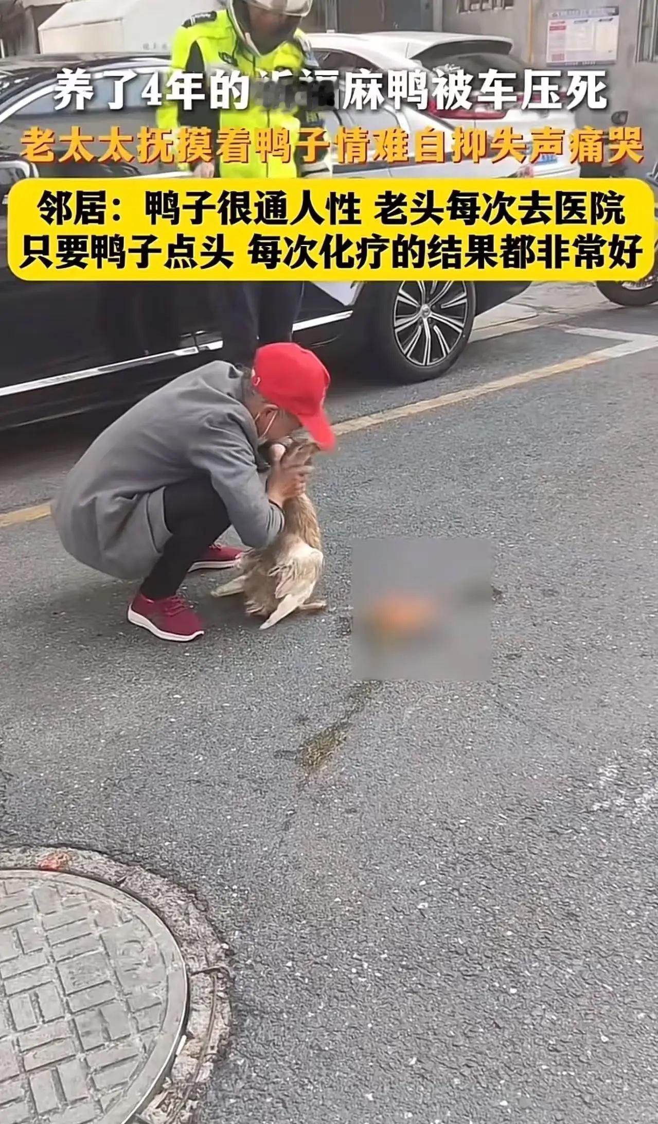 江苏昆山,养了4年的祈福麻鸭被车压死,老太太抚摸着鸭子情难自抑失声痛哭!邻居:鸭子很通人性,老头每次去医院只要鸭子点头,每次化疗的结果都非常好!网友:这是个悲剧,不光是有感情了,还有对老伴生死的精神寄托,着实令人哀伤! 这不仅仅是一只鸭子的一生,更像是一段温暖的故事,一份深沉的陪伴。或许在很多人眼里,鸭子不过是家畜,是乡村的一抹平凡的风景,但在这位老太太的心中,它却是最忠诚的朋友,是生命中不可或缺的存在。 每天清晨,老太太都会带着鸭子一起走在乡间的小路上。鸭子似乎比人还懂事,轻声叫唤,仿佛在告诉她:“我在这里,陪你。”每当老太太去医院做化疗,鸭子都会站在门口,用那通人性的眼神望着她,似乎在用它那特殊的方式给予她力量和勇气。邻居们都说,鸭子的点头似乎成了老太太战胜病魔的“秘密武器”。每次化疗结束,老太太的脸上都会浮现出一丝希望的笑容,她相信,是鸭子在默默守护着她。 可是,命运总是那么残酷。那天,老太太的心情还在期待着康复的喜悦,却不料,养了四年的祈福麻鸭竟在街上被一辆疾驰而过的汽车无情碾压。那一瞬间,老太太的心碎了。她蹲在地上,颤抖着抚摸着那只曾经陪伴她多年的鸭子,泪水止不住地流淌。邻居们都说,鸭子很通人性,似乎知道老太太的心情,每次她悲伤时,它都会用那温暖的眼神安慰她。 网友们看到这个故事,也都深受触动。有的人留言说:“这不仅是一个动物的生命,更是一个家庭的精神支柱。”有人感慨:“动物的陪伴,有时候比人更真诚、更温暖。”还有人说:“这是个悲剧,不仅仅是失去了一只鸭子,更像失去了一份希望和信仰。”的确,很多人都在感叹:人与动物之间的情感,远比我们想象得更深更纯。 其实,这个故事背后折射出的是一种深层次的情感需求。老人孤独时,一只动物的陪伴,能带来无限的慰藉和力量。它们用最简单的方式,传递着最真挚的情感。而我们,是否也应该反思一下,在这个快节奏、物质至上的社会中,是否还留有一份对生命的尊重和对情感的珍惜? 更令人心疼的是,老太太的失去,远远超出了那只鸭子本身。那是一份精神的寄托,是她面对疾病、面对孤独时唯一的依靠。动物的陪伴,或许比许多“人类的陪伴”更为纯粹、更为真诚。它们没有语言,却用行动诠释了“陪伴”的真谛。 这个故事也让我们反思:我们是否也在生活中忽略了那些默默守护我们的人和物?是不是在追求更高的生活品质时,忘记了最简单的幸福?或许,我们都应该像那只鸭子一样,用心去感受身边的每一份温暖,每一份真情。 生命无常,谁都无法预料下一秒会发生什么。我们能做的,就是在有限的时间里,学会去珍惜那些陪伴我们的人和事。也许,那些看似平凡的瞬间,正是我们生命中最宝贵的财富。 这起悲剧,令人扼腕叹息,但也让我们看到了人性中最温暖的一面——那份无私的陪伴、那份深沉的情感。愿老太太早日走出悲伤,也希望每一个人都能在生活中找到那份属于自己的“鸭子”,在平凡中找到不平凡的幸福。 你怎么看?是不是也曾在生活中感受到那份温暖与感动?欢迎留言,让我们一起为那些陪伴我们走过风雨的生命,送上最真挚的敬意。大麻鸭 太仓麻鸭 平江麻鸭