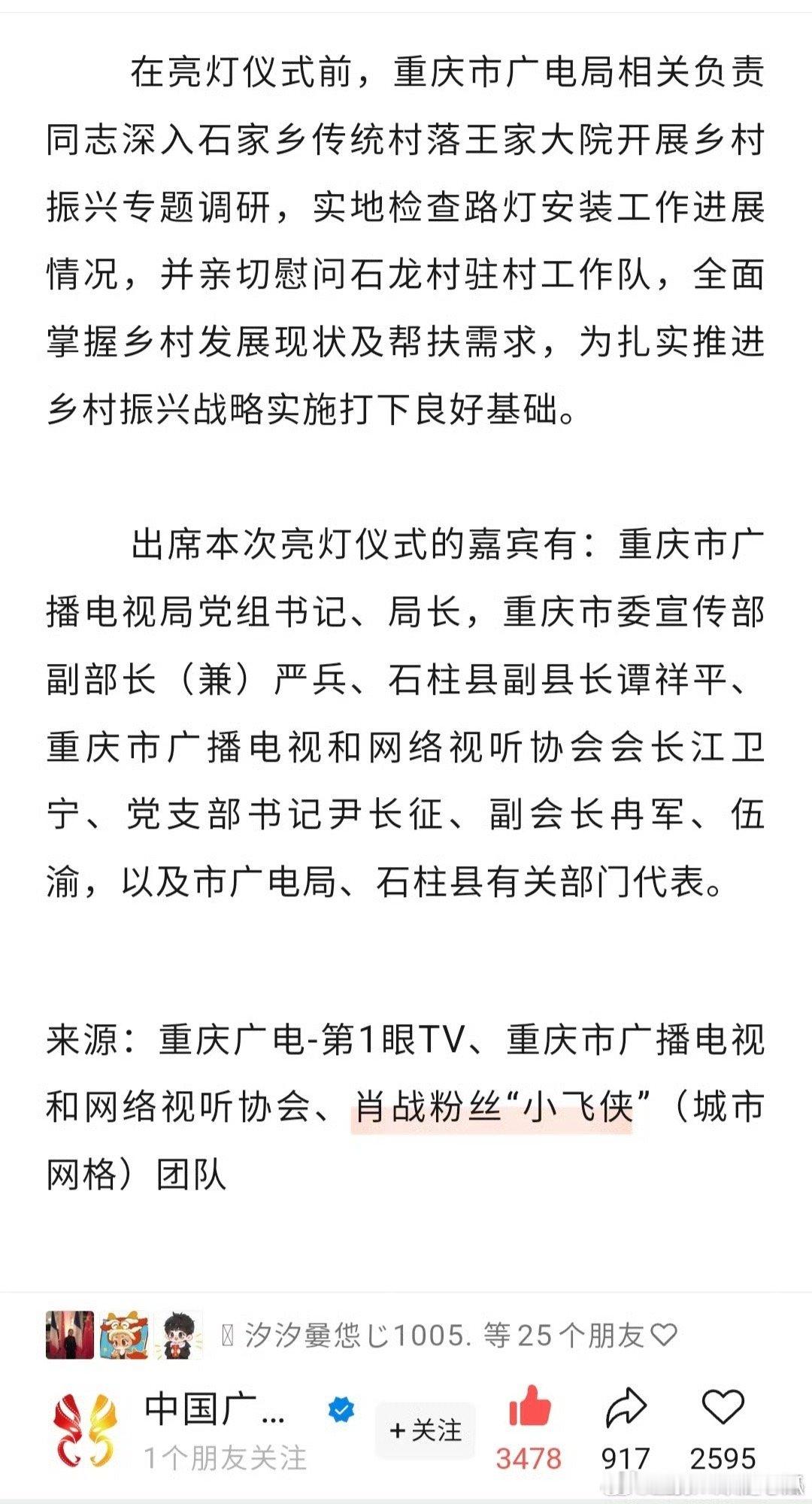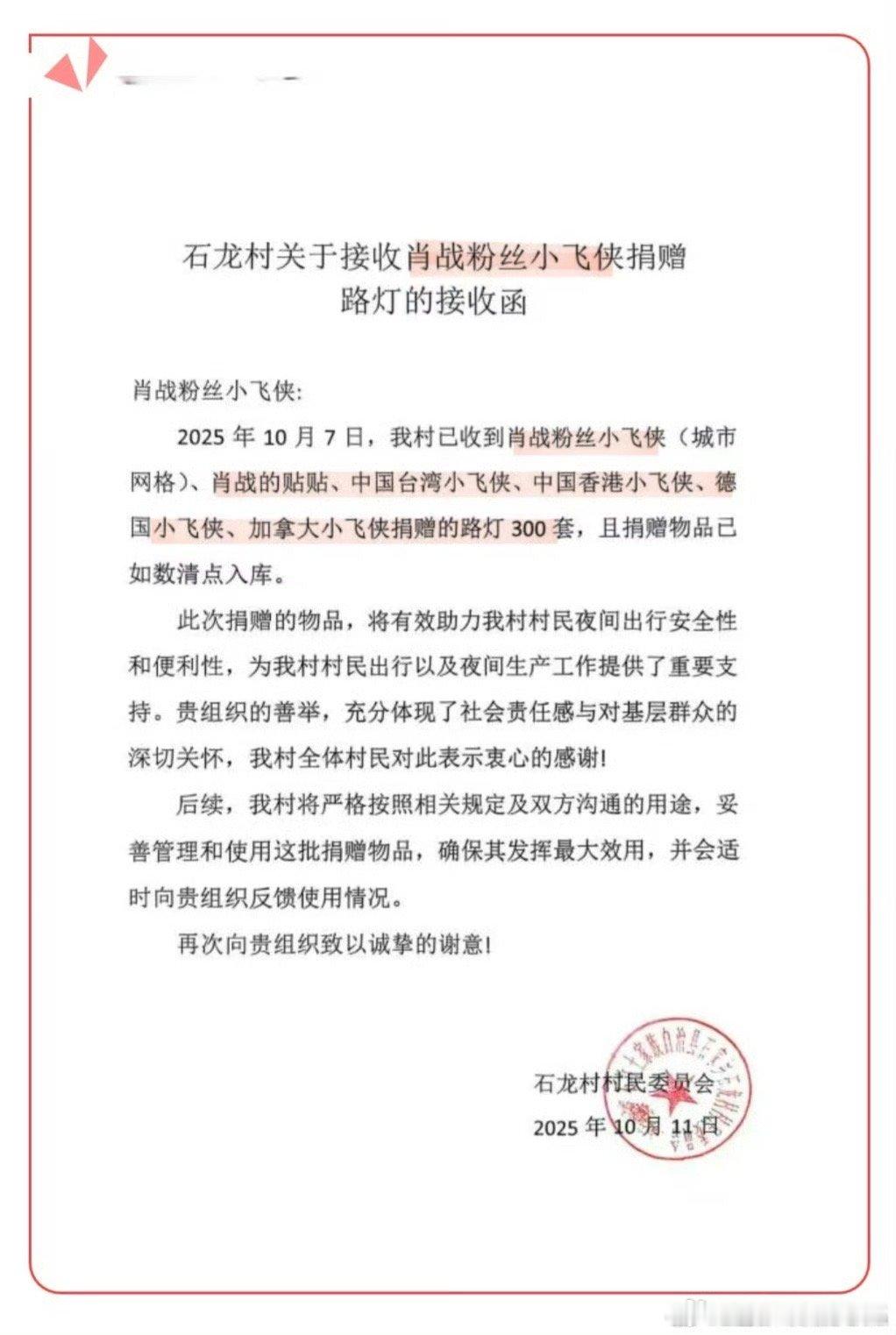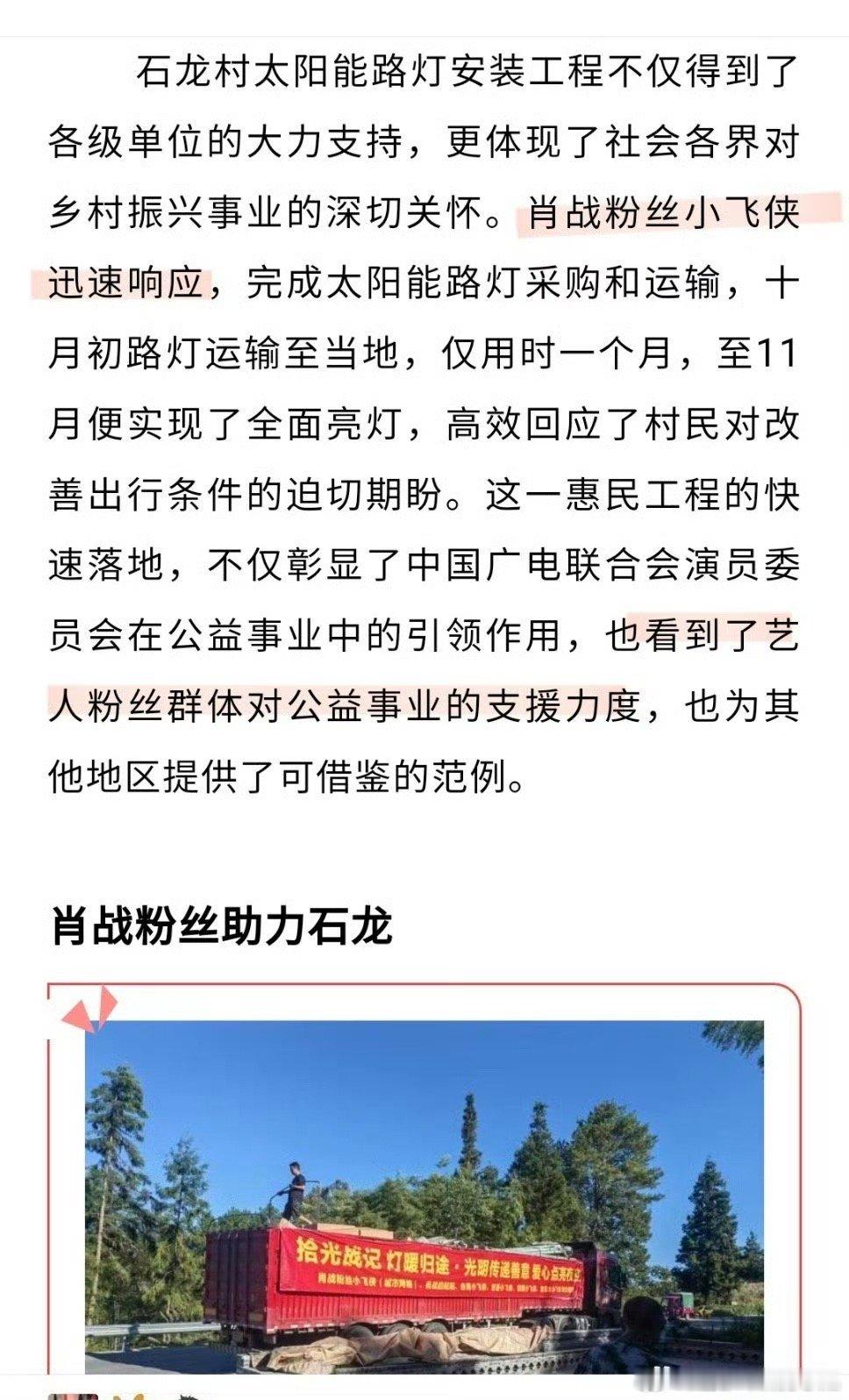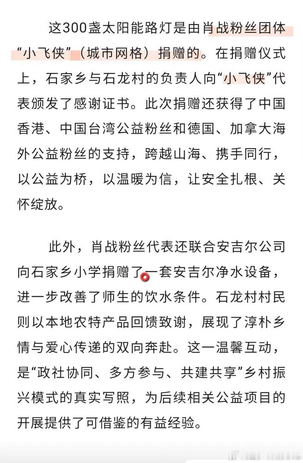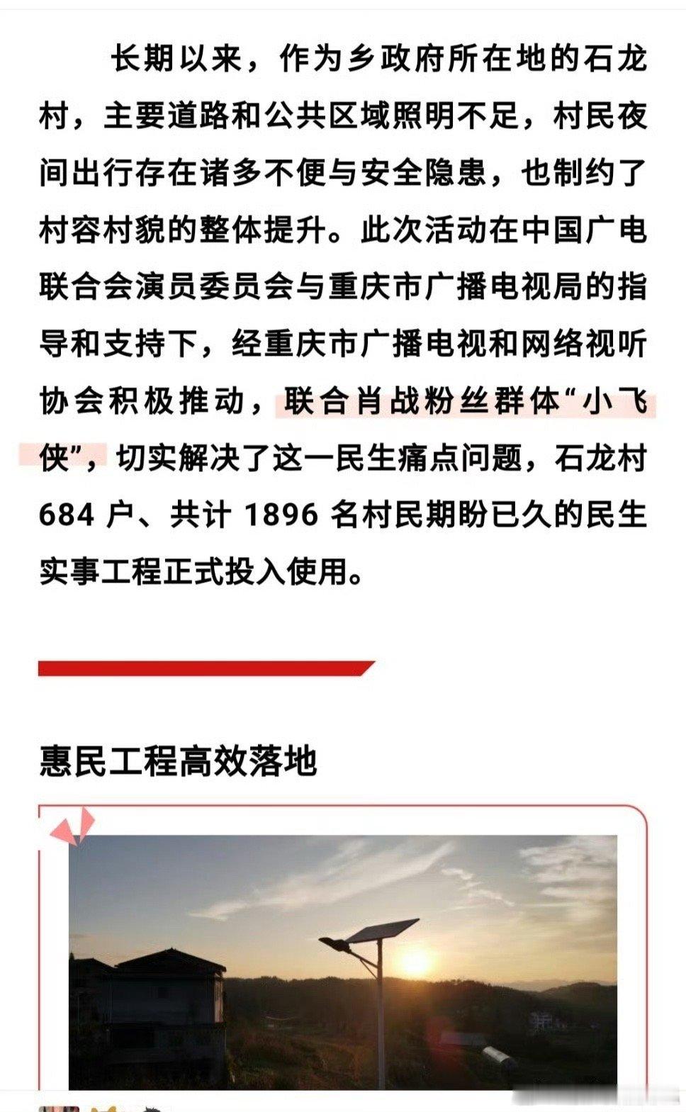 肖战粉丝小飞侠捐赠的路灯公益被各方公开赞扬报道!这种落到实处惠及民生的公益就该如此!她们真的是一群善良有爱的姑娘!