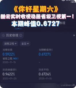 《你好星期六》太牛了!酷云实时峰值 0.6727,省级卫视收视第一,实至名归~