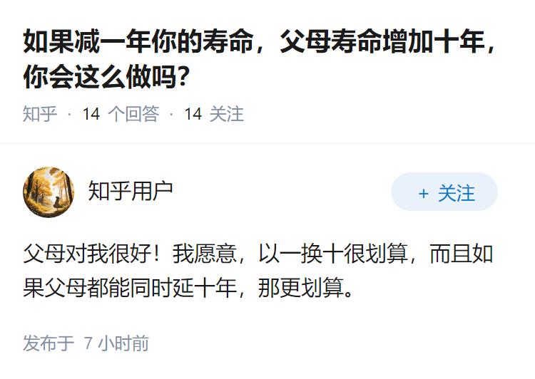 如果减一年你的寿命,父母寿命增加十年,你会这么做吗?