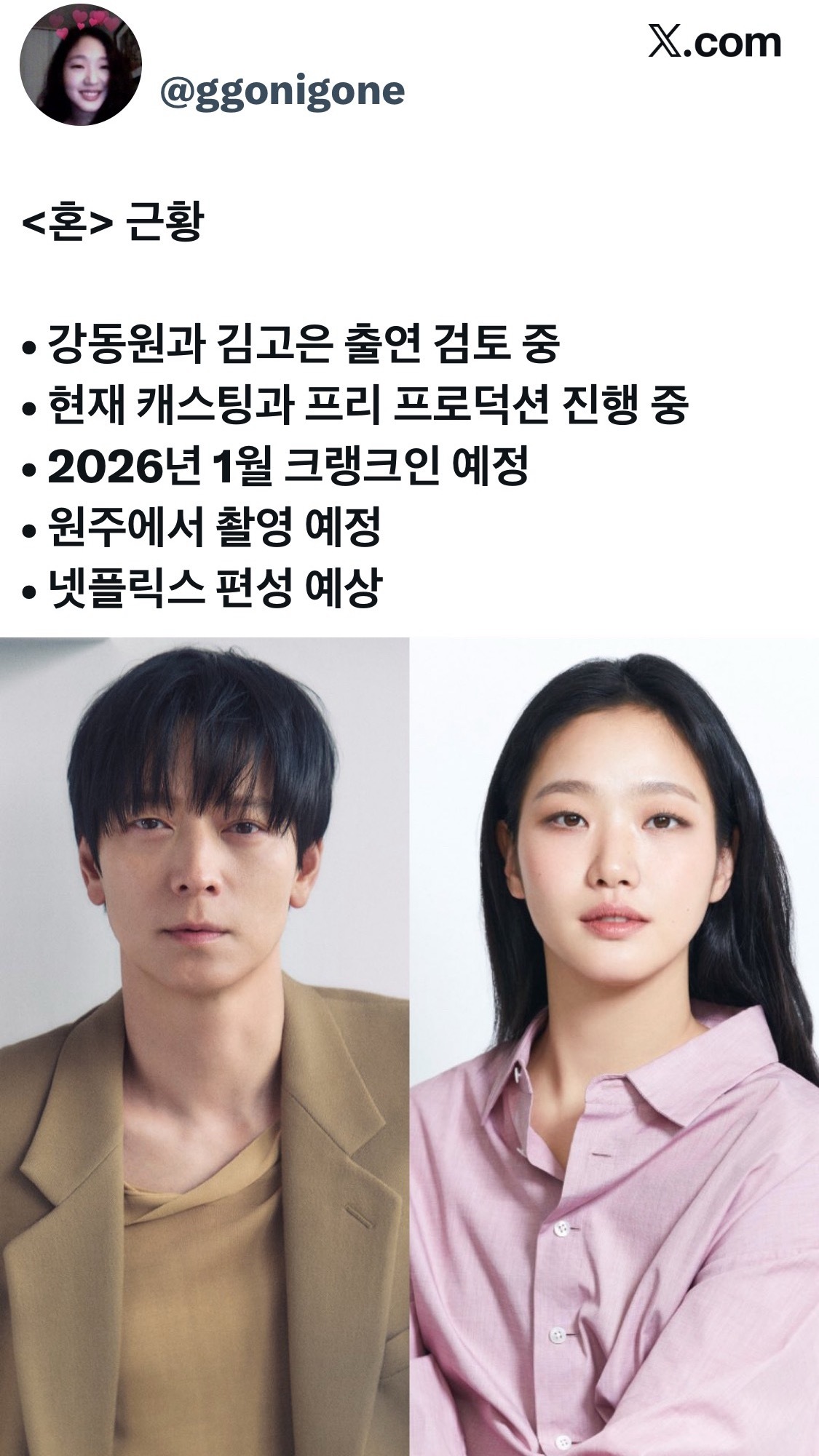 近况姜栋元和金高银正在讨论出演中现在正在进行选角和前期准备工作预计2026年1月开机预定在原州拍摄播出平台预计网飞