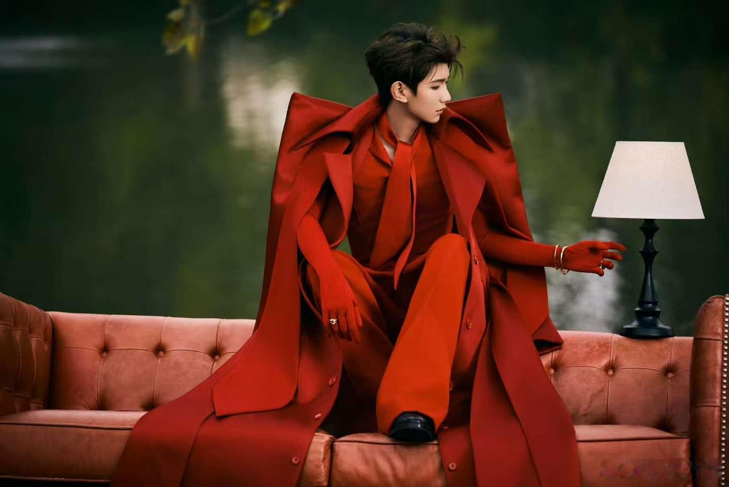 王源红色高定,是西装,