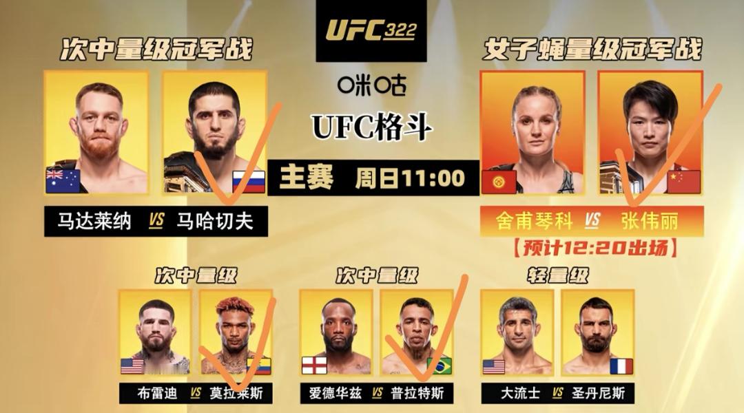 主赛前三场 两场KO 一场tko 全是速杀!接下来 最后两场主赛 张伟丽 要来了太激动了 天呐