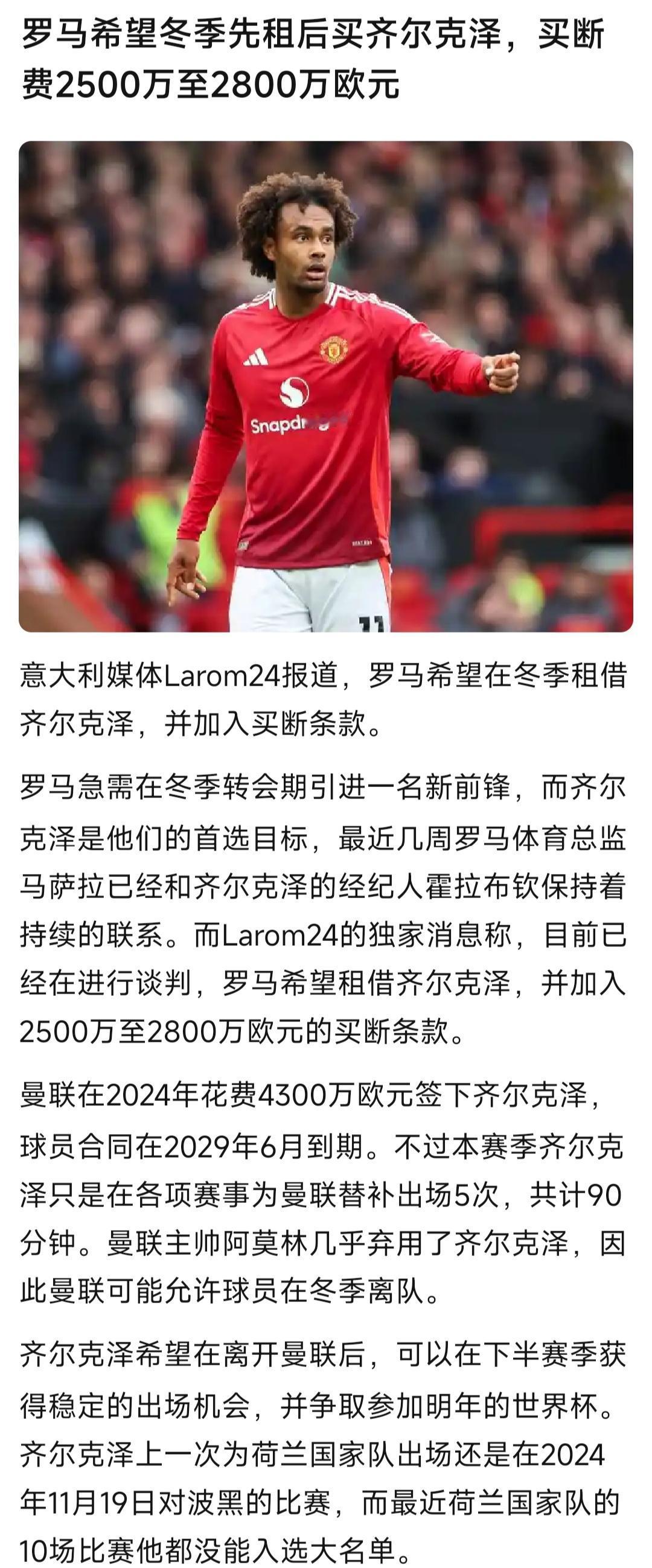曼联球员还是受欢迎,意甲特别喜欢。 罗马看中齐尔克泽,能买就不错了。 拉什福德,安东尼已经把曼联球员身价踢上去,以前都是免费租借,现在有转会费了。 要是曼联拿英超冠军,估计能卖得更高![大金牙]