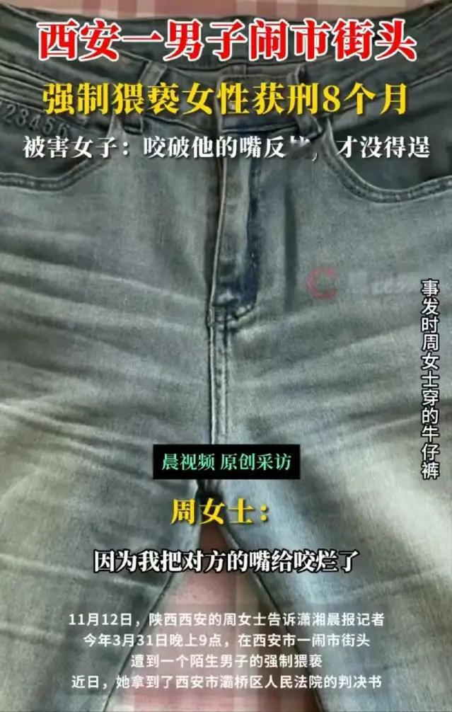 闹市惊魂!西安女子遭陌生男扑倒猥亵,咬破对方嘴唇逃脱后,判决结果引热议 繁华街头的霓虹下,本是归途中的轻松惬意,却成了西安周女士一辈子挥之不去的噩梦。2025年3月31日晚9点40分,身着粉色毛衣和牛仔裤的她,在灞桥区柳鸣路的人潮中缓步前行,丝毫未察觉身后一双不怀好意的眼睛,已默默尾随近百米。 毫无预兆的瞬间,一名男子猛地扑来,将她狠狠按倒在地。沉重的身躯压制得她动弹不得,男子一边强行亲吻她的嘴,一边粗暴地撕扯她的牛仔裤,另一只手死死按住她挣扎的胳膊。周女士拼尽全力反抗,可对方力气悬殊,绝望之际,当男子的嘴唇再次袭来,她狠下心一口咬破对方嘴唇,浓烈的血腥味在口中蔓延,男子受惊后退,她才趁机挣脱狂奔。 这场突如其来的侵害,给周女士留下了严重的身心创伤。医院诊断显示,她不仅唇挫伤、右胳膊肌肉拉伤,还出现了创伤应激反应、失眠、焦虑抑郁及偏执状态,仅医疗费就花了944.43元。警方凭借她口中残留的嫌疑人血迹,次日便抓获了酒后起意的蒋某某,DNA鉴定也证实了其作案事实。 然而近日拿到的判决书,却让周女士难以接受。法院认定蒋某某构成强制猥亵罪,考虑到其如实供述且认罪认罚,判处有期徒刑八个月,仅赔偿经济损失944.43元。“他的行为明明是强奸未遂,八个月刑期太轻了!”周女士已向检察院提交抗诉申请,希望讨回公道。 光天化日的闹市施暴,受害者以勇气自保,却因判决结果陷入新的困扰。这起案件也引发网友热议:公共场所的恶性侵害,该如何平衡量刑与警示效果?正义的天平,能否给受害者更足够的慰藉?猥亵 猥亵要判刑