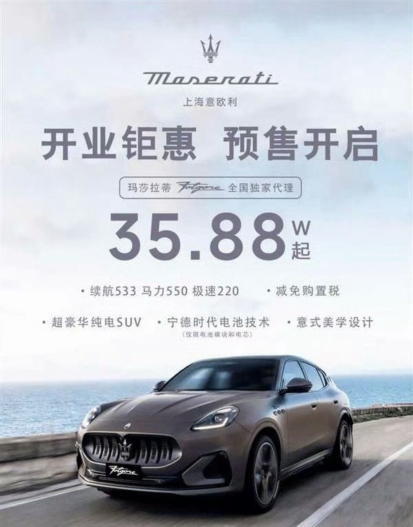 玛莎拉蒂格雷嘉纯电,指导价89,优惠价35。我觉得35都贵了,25合适