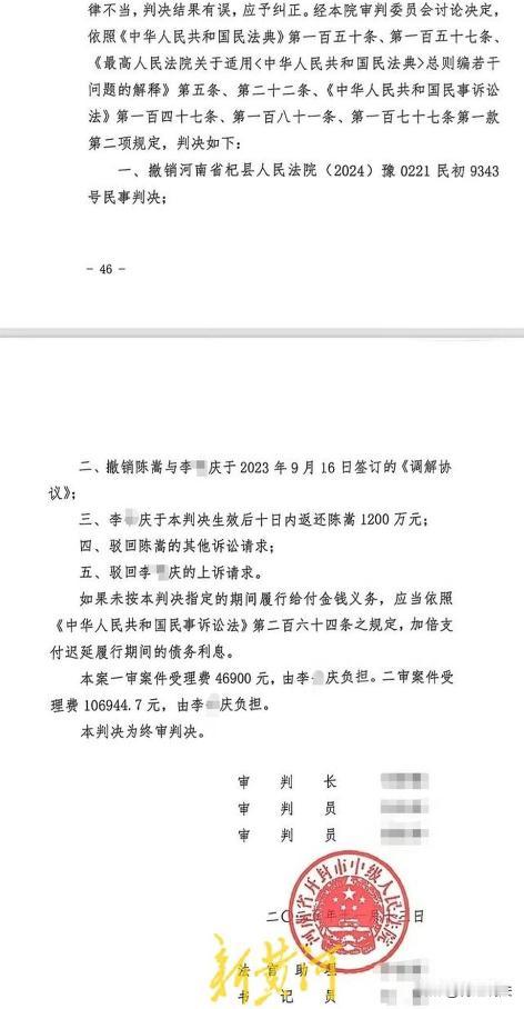 河南郑州,商人陈嵩,原本在生意场上摸爬滚打,日子过得也算安稳。可谁能想到,一场《购销合同》纠纷,让他的人生急转直下,遭遇了常人难以想象的磨难。 据悉,2023年8月,陈嵩的生活,被一份合同被彻底打乱,合同的另一方是李某庆,以涉嫌诈骗罪两次对他进行报案。 这事,更让陈嵩崩溃的是,时任刑侦大队大队长的唐某胜,竟参与主导了调解。 唐某胜对陈嵩说,如果不签《调解协议》,陈嵩就会被判刑。 这哪是调解,分明就是威胁! 陈嵩害怕了,他一个普通商人,哪经历过这种阵势,在巨大的压力下,他被迫签下了1200万元的《调解协议》。 这时,有人要问了,陈嵩就这么轻易被威胁签了协议,他就没想过反抗吗? 其实,陈嵩当时也是没办法。 他就是个做小生意的,面对公安大队长这样的权威人物,心里又慌又怕,根本不敢反抗,只能先签了协议,想着之后再想办法解决。 签完协议仅仅两天,陈嵩就被立案了。 这速度,把他弄得晕头转向。 2024年4月3日,陈嵩被刑拘,4月30日被批准逮捕,他被羁押了8个月。 李某庆觉得陈嵩在合同里有问题,自己报案是合理合法的,而且通过调解让陈嵩签了协议,自己拿到钱也是应该的。 可他没想到,事情并没有那么简单。 8月19日,检察院作出了刑事赔偿决定,支付陈嵩近18万元。 这虽然不能完全弥补陈嵩这8个月所遭受的损失,但至少让他看到了希望。 11月13日,开封中院二审判决,撤销一审判决和《调解协议》,还要求李某庆返还陈嵩1200万元。 这场合同纠纷,陈嵩从一个普通的商人,变成了被威胁、被羁押的对象,又最终在法律的帮助下,挽回了自己的损失。 而李某庆,原本以为自己可以通过不正当的手段获取利益,结果却竹篮打水一场空。 陈嵩签订《调解协议》是否受胁迫,根据《民法典》第一百五十条规定:一方或者第三人以胁迫手段,使对方在违背真实意思的情况下实施的民事法律行为,受胁迫方有权请求人民法院或者仲裁机构予以撤销。 唐某胜以陈嵩将被判刑要挟,陈嵩在恐惧和压力下签订了《调解协议》,这明显违背了他的真实意思表示。 所以,陈嵩有权请求撤销该协议,法院撤销一审判决和《调解协议》是合理合法的。 李某庆觉得自己报案是合理合法的,为什么最后要返还1200万元呢? 虽然李某庆报案是基于他认为陈嵩涉嫌诈骗罪,但通过不正当手段,即利用唐某胜的威胁,让陈嵩签订《调解协议》获取利益,这是不符合法律规定的。 根据《民法典》第一百二十二条规定:因他人没有法律根据,取得不当利益,受损失的人有权请求其返还不当利益。 李某庆因《调解协议》取得的1200万元,没有合法的依据,属于不当得利,所以应该返还给陈嵩。 为什么二审会做出这样的判决呢? 原来,开封中院认为,唐某胜参与主导调解,以陈嵩将被判刑要挟,陈嵩是受胁迫、违背真实意思签的协议,起诉撤销符合规定。 协议撤销后,李某庆因协议拿的1200万就得返还。 一审法院扣减货款差价判返765万,双方不服上诉。 二审按实际情况,维持一审判决,直接判返1200万。 陈嵩签订《调解协议》是否受胁迫,以及李某庆是否应该返还1200万元,您对这件事有什么看法呢?