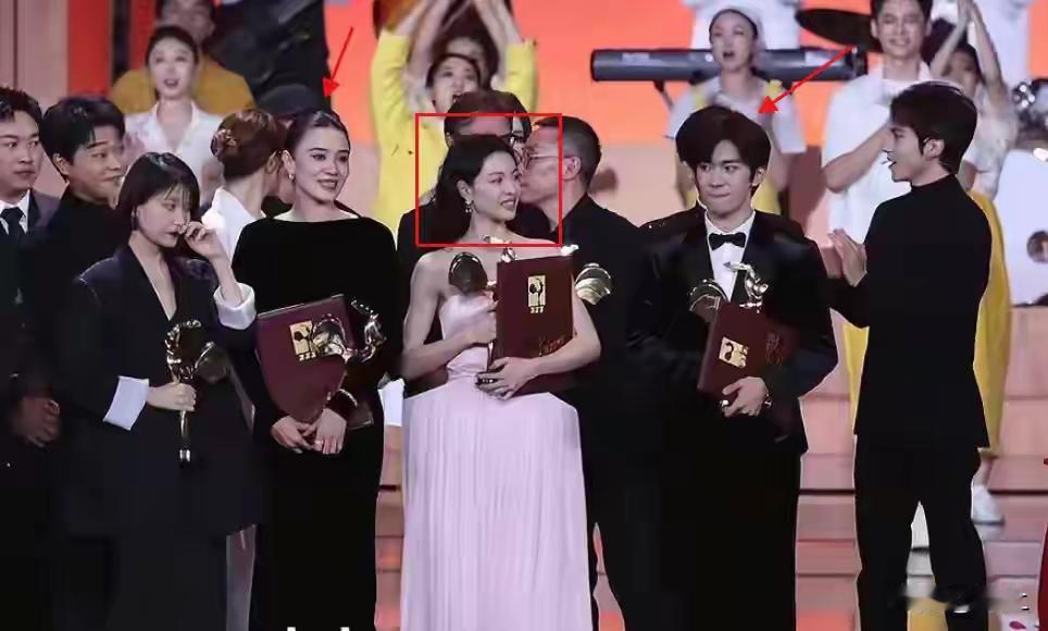 她简直太想红了,居然又一次争抢C位。这次更夸张,让影后和影帝一左一右给她当陪衬,她也真的好意思。 在第38届金鸡奖上,钟楚曦荣获最佳女配奖,宋佳摘得最佳女主奖,易烊千玺获得最佳男主奖,站位留影时,钟楚曦抢占了C位。 钟楚曦抢C位已不是头一回了。上次她抢刘亦菲和杨幂的C位,这次更过分,直接站到女主和男主中间,脸上笑得那叫一个灿烂。 就算你抢到了C位,可人家就是比你有实力、有作品,这些你抢得走吗?