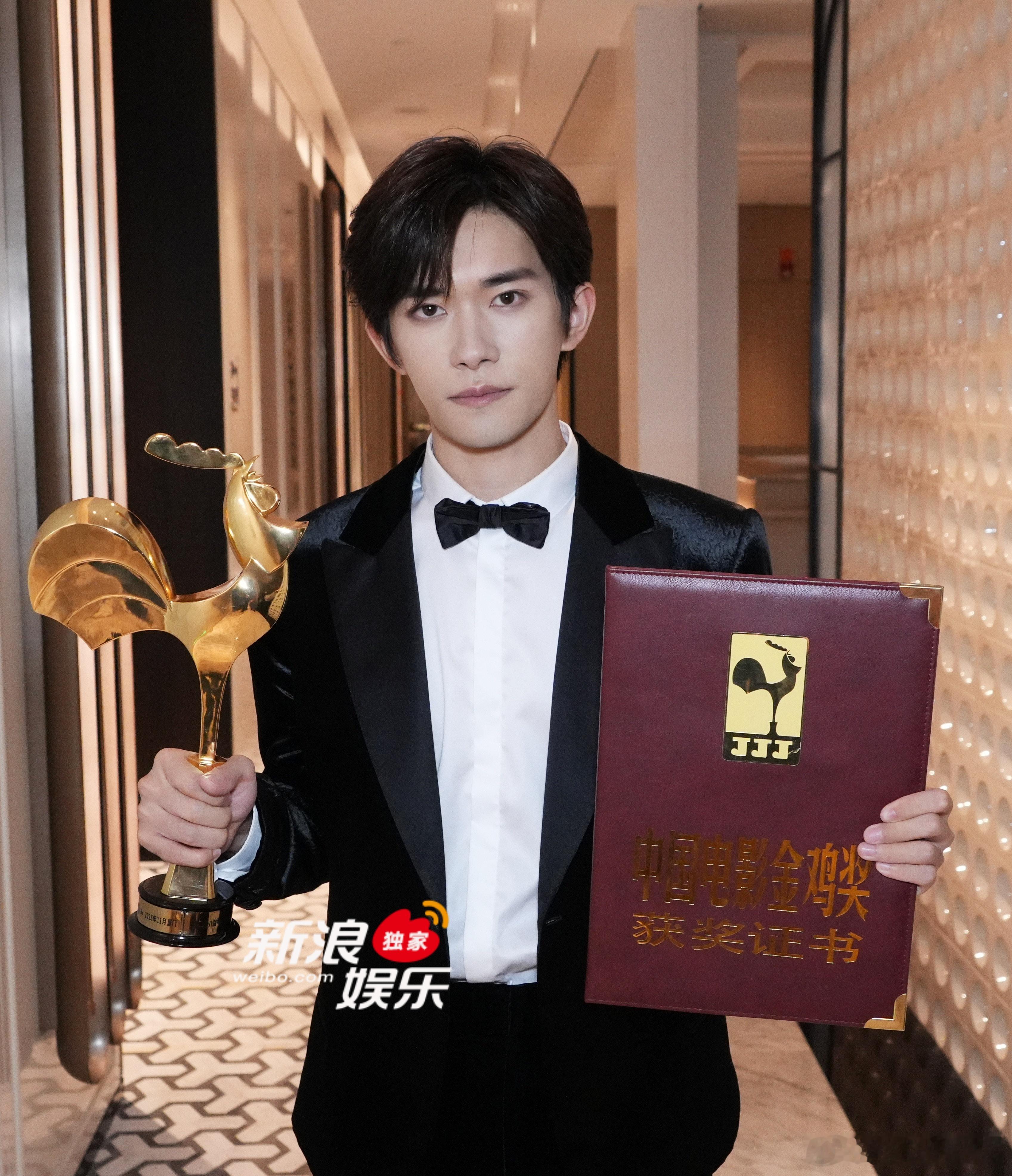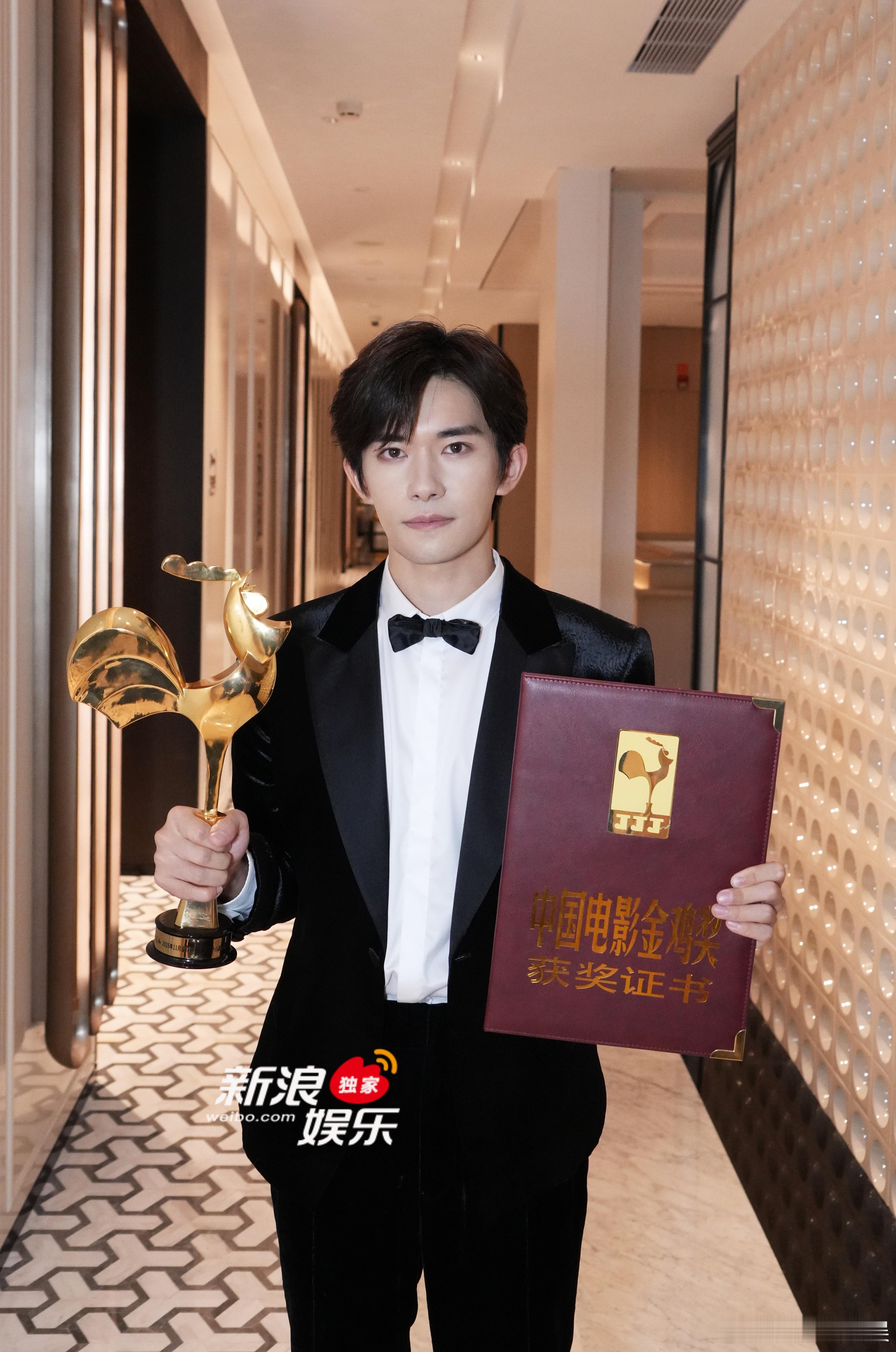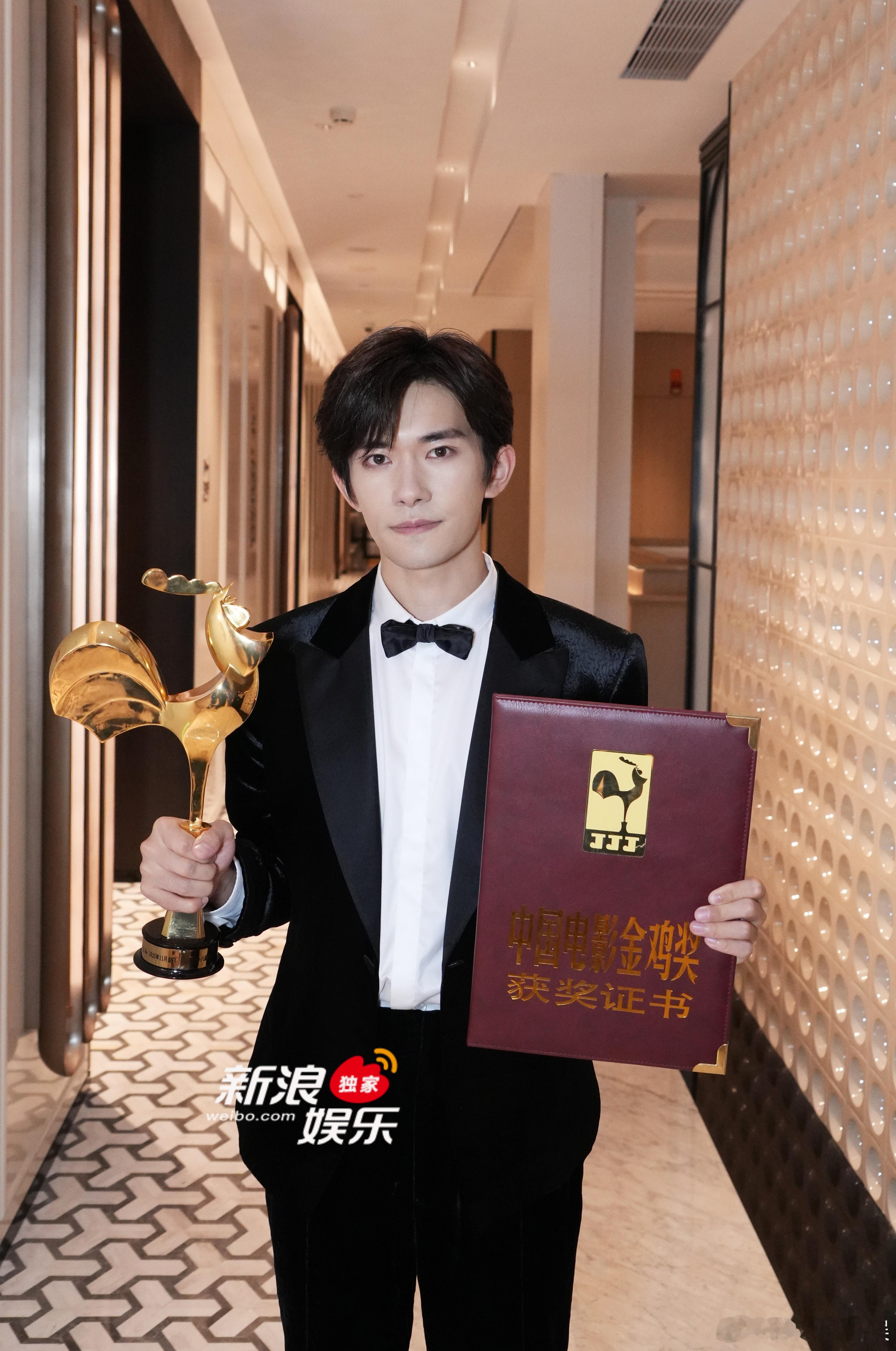 独家 获封金鸡影帝幕后照🈶!左手证书,右手奖杯,年轻、有才又帅气的金鸡影帝