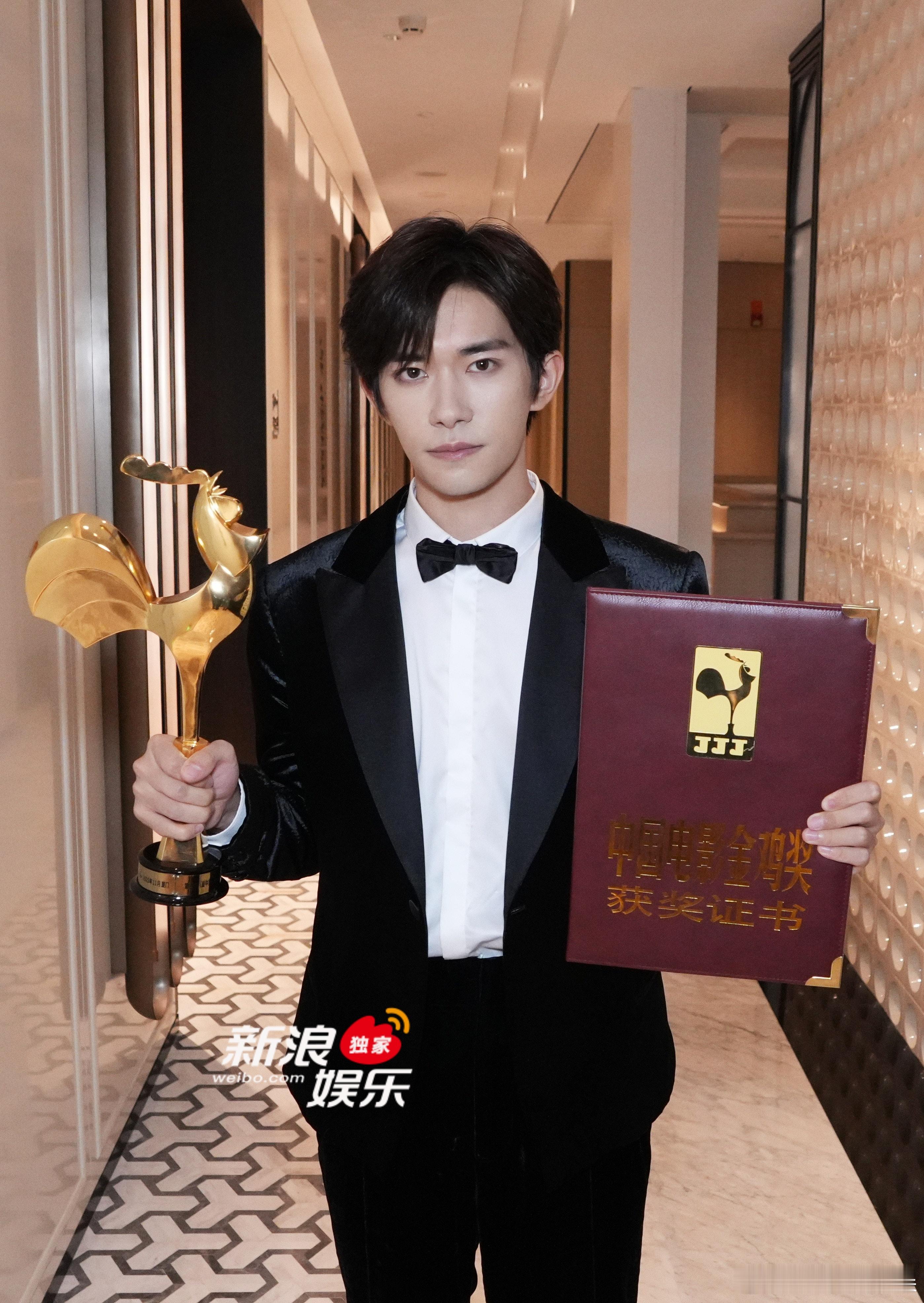 独家获封金鸡影帝幕后照🈶!左手证书,右手奖杯,年轻、有才又帅气的金鸡影帝