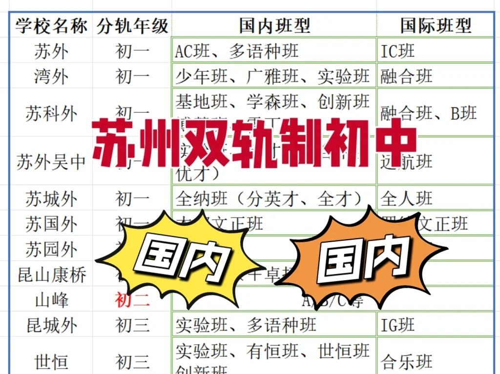 苏州国内/国际班都有的初中都有谁? 苏州两条腿走路的学校还是很多的,🈶初一就开始分轨的,也🈶初二初三才开始分轨的。 ❤一般国内国际在你报名时候就需要选好,因为初中的国际班基本不会走中考了 ❤国内班班型比较多,其中有考完就确定的,也有进去之后再分班的 苏州民办学校 小升初 国际班 双轨制学校 苏州外国语学校 苏州湾外国语学校 苏科外 苏外吴中校区
