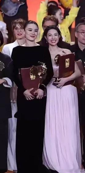 钟楚曦可能只是想和宋佳贴贴站一块,两个人都是同一部电影获奖,从站位上看,可能太冷了,一直想和宋佳贴贴贴吧