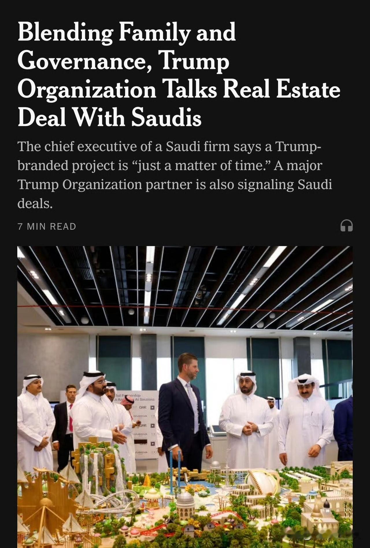 NYT报道特朗普集团将参与开发沙特政府的一个地产项目,总价约630亿美元。特朗普过两天要见沙特王储MBS,预计双方将签署经济和国防协议。