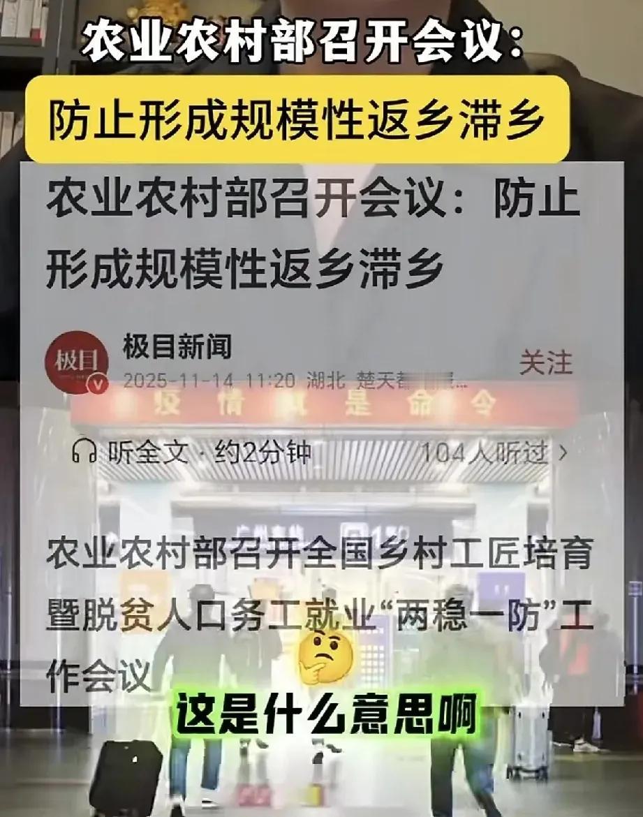“防止规模性返乡滞乡”的提醒,戳中了当下最真实的民生困境! 不是大家不爱城市,而是高成本和就业难,把人逼向了农村。 城里租房买房、水电物业压得人喘不过气,拼尽全力只为三餐安稳;农村却能自给自足,没那么多经济压力,日子过得更惬意。可大量年轻人返乡,农村本就以老弱幼残为主,很容易出现不稳定因素。 这不是简单的“逃离城市”,而是对生活成本的无声抗议。要解决问题,不能只堵不疏,关键是降低城市生活压力、完善救助机制,让年轻人在城里能安家,回农村有奔头。 城乡平衡才是根本,不然年轻人不愿回城市,对社会发展是不小的考验。你觉得该怎么让年轻人既能留得下城市,也回得去农村?