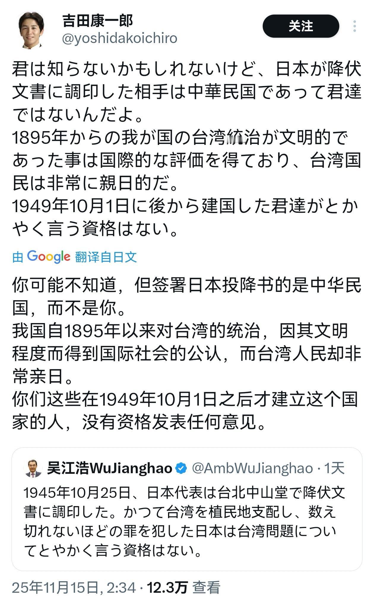 看了这位东京都议员的发言,就知道日本现在大部分主流是个啥想法了:首先日本对中国没有打输,1944年还打穿了KMT呢。其次要投降也是和KMT签的合约,所以对PRC不算数。 那好,正好我们中国也觉得之前签的投降条约太简单了,也没有执行去琉球和日本驻军的协定,我们现在重新来过。