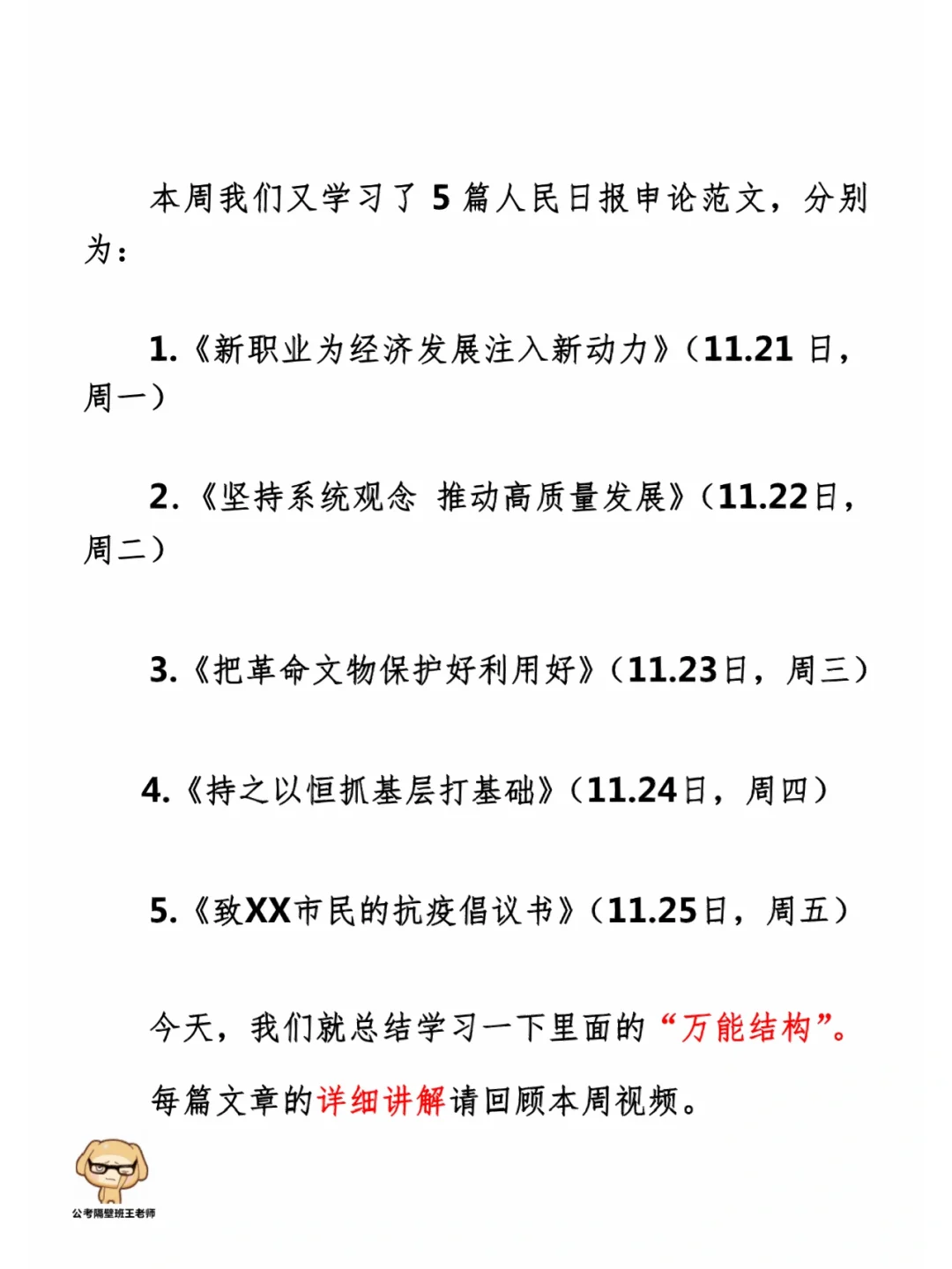 这里是公考隔壁班王老师独创的“每天半小时・申论80分”抄写团,欢迎加入我们!