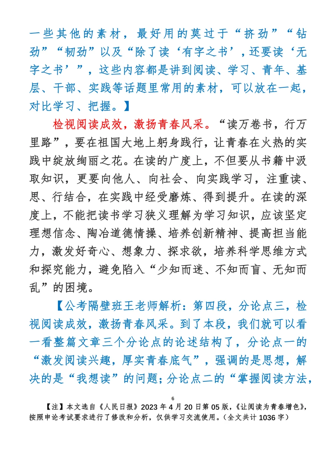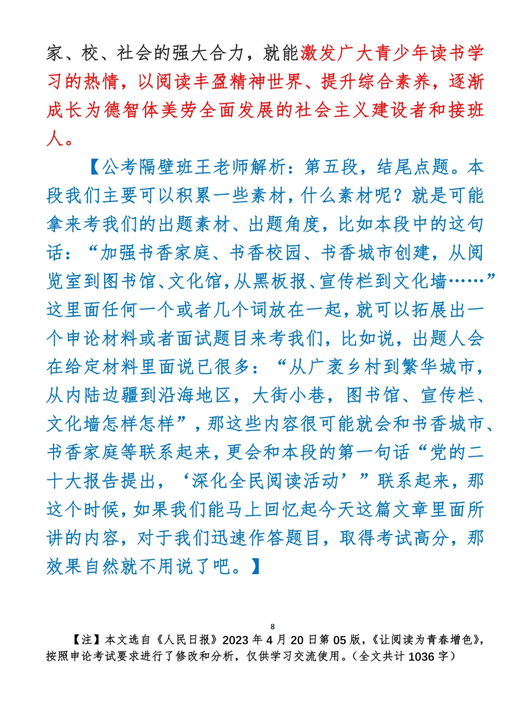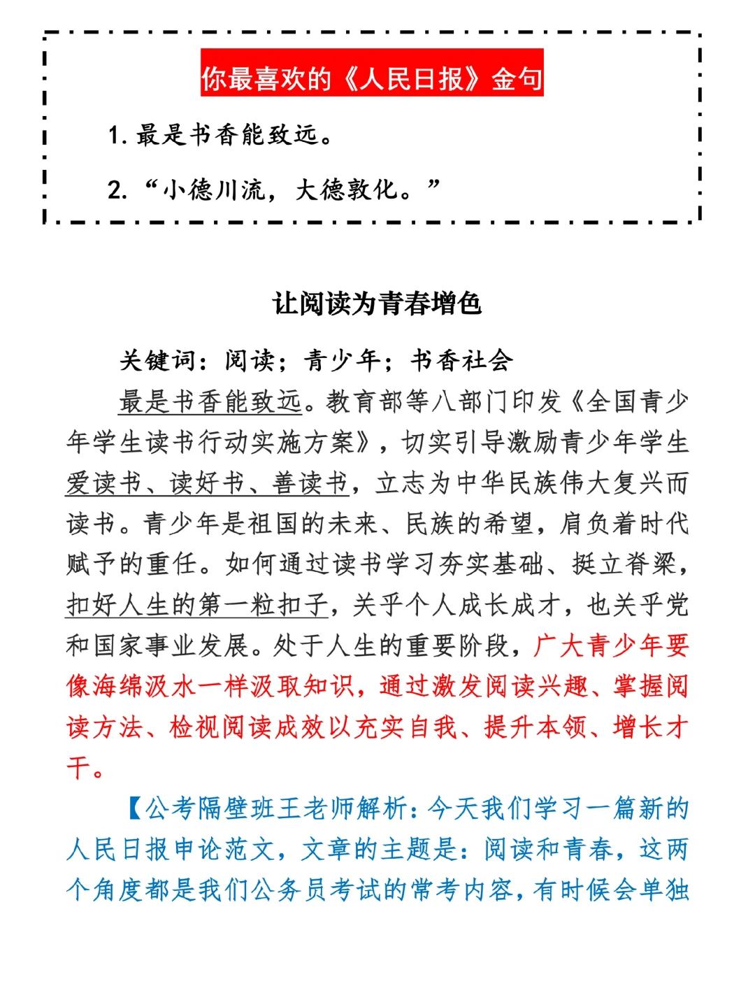 如何抄写:每日抄写文章发在“公考隔壁班王老师”账号,红色字是重点句和结构句,黑色字是正文,蓝色字是解析,大家抄写时不必抄蓝色字。建议先通读全文,做到心中有数再开始抄写,效果会更好。 关于文章:抄写文章来源于人民日报,但每篇文章我都根据申论考试要求进行了修改:一是重写或修改开头、结尾;二是统一段首句句式结构;三是调整段落字数,使文章结构更均衡;四是简化复杂长难句,使之更具可模仿性。每篇文章无论修改多少,都是基于申论考试要求,毫无对人民日报文章品评之意。(此处致敬人民日报)