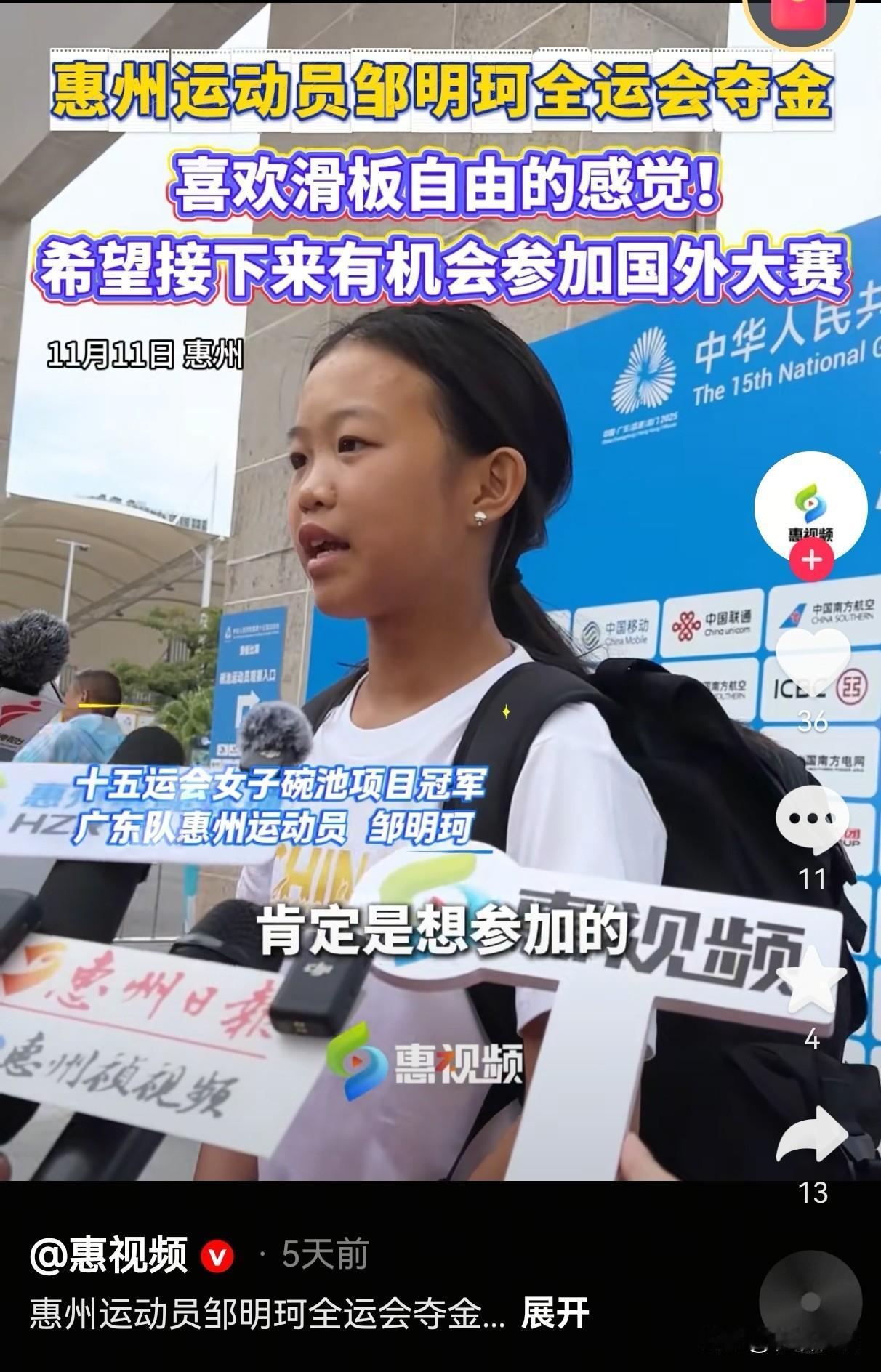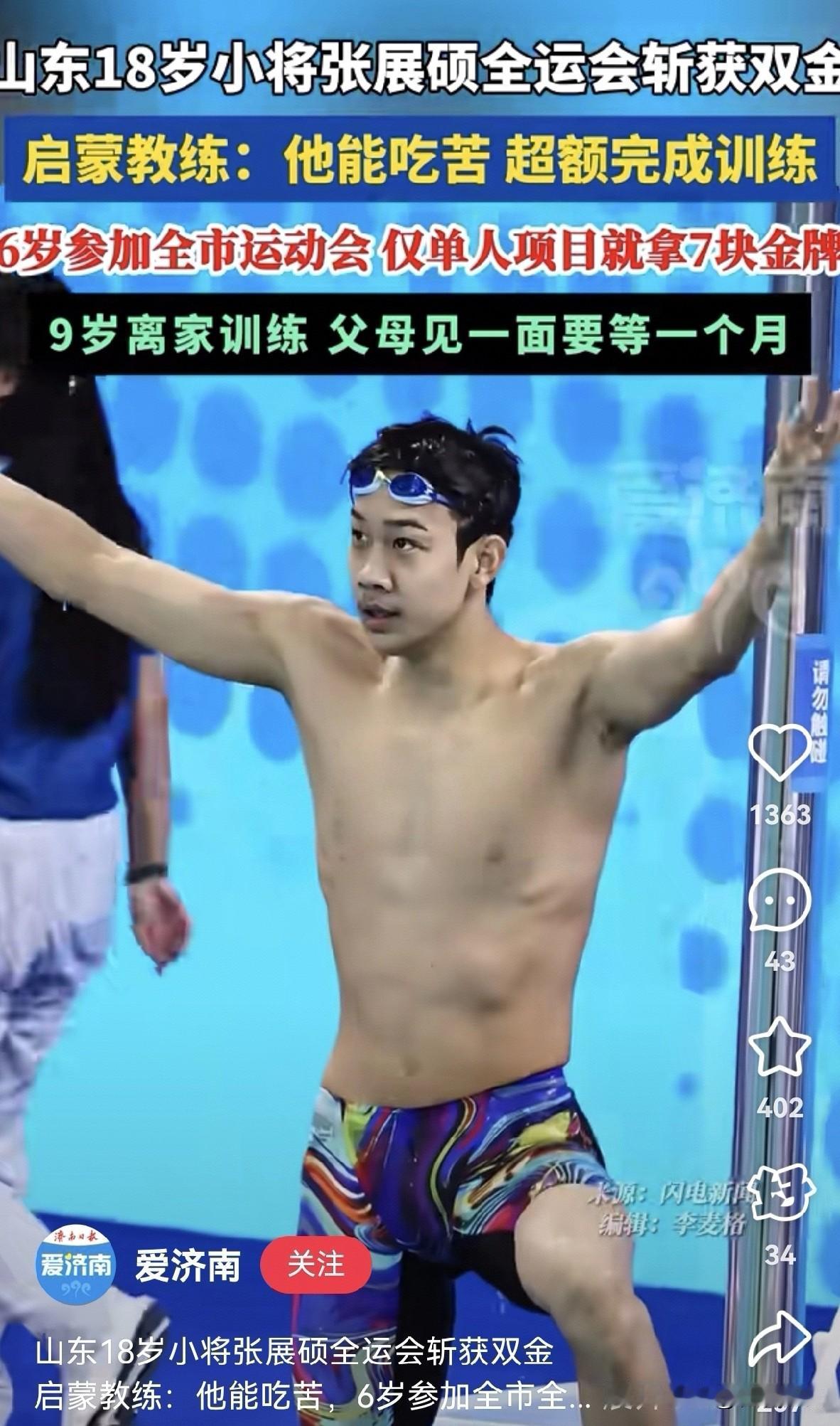 初生牛犊不怕虎,最不轻狂枉少年, 全运会上,一场青春风暴席卷赛场。 13岁于子迪打破尘封13年的亚洲纪录, 18岁张展硕刷新世界青年纪录, 13岁邹明珂逆转夺冠, 这些“小孩哥”、“小孩姐”稚气未脱, 却用实力书写少年担当。 中国体育从不缺少年传奇。 全红婵五跳三满分惊艳东京, 苏翊鸣首钢大跳台一鸣惊人, 潘展乐刷新百米自由泳世界纪录, 从“00后”到“10后”, 他们用拼搏诠释“江山代有人才出”。 在赛场上敢于拼搏,在赛场外展现出新生一代的格局与豁达,这份热情自信、胜不骄败不馁的清醒,正是青春最好的模样。 少年负壮气,奋烈自有时。 当越来越多的年轻人敢于有梦、勇于追梦,中国体育的未来、我们共同的未来,便更加值得期待。 愿这份热忱拼搏的体育精神,激励更多人勇往直前,也愿每一份青春梦想,都能在奋斗中绽放光芒! 全运会 山东 广东 少年强 河北 这就是少年青春 全运会