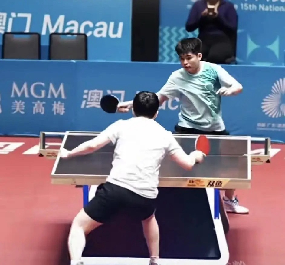 全运会独行侠——林诗栋。作为海南队的独苗,他没有陪练。每天穿梭在训练场,他看到哪