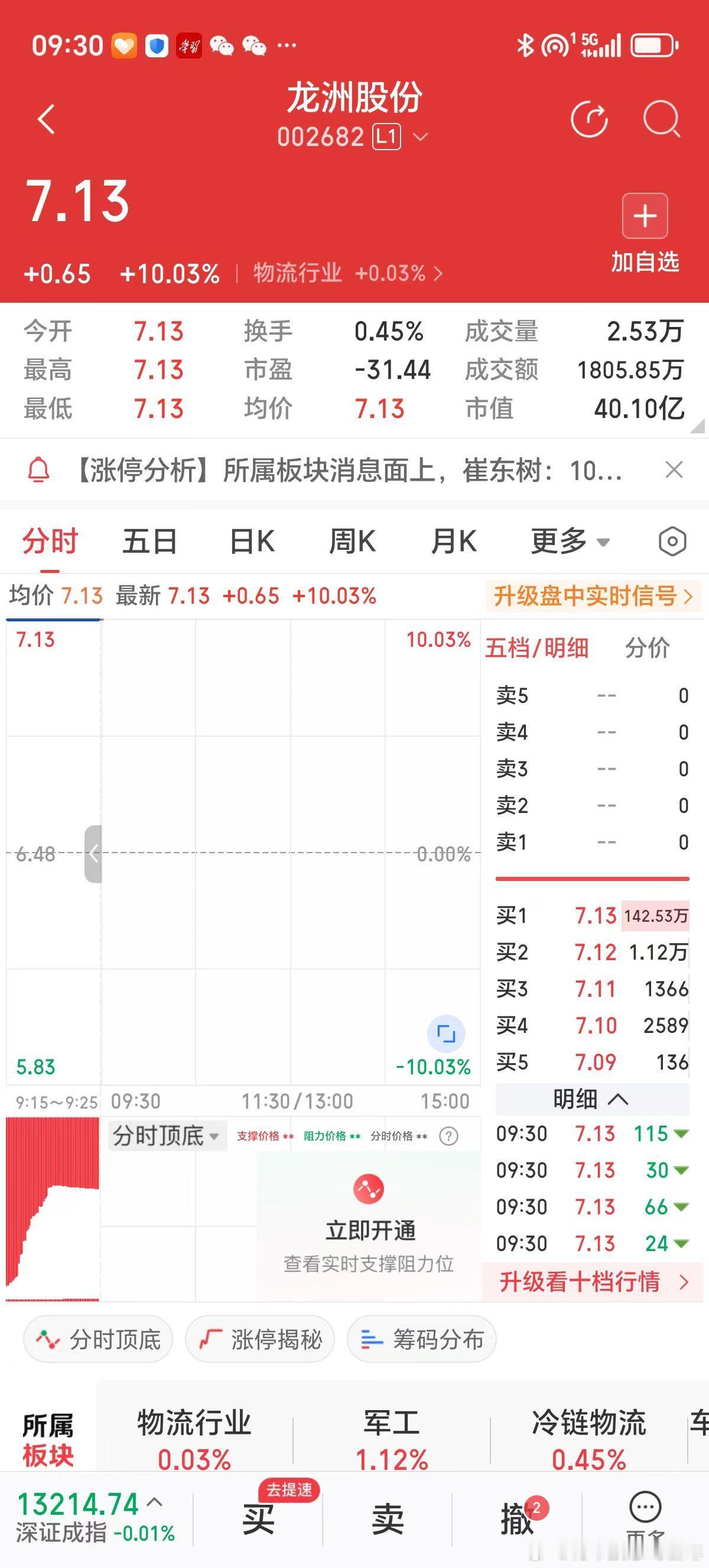 G2元首会见,美联储宣布再降息25个基点,大盘在4000点晃,手中握有两只黄金票。近日购的物流行业股龙洲股份,2025年11月13日开盘不到10分钟涨停,没卖,2025年11月14日开盘不到20分钟涨停,没卖,2025年11月17日开盘涨停,看情况卖出或继续持有。近日购的医疗服务股大东方,2025年11月14日开盘不到1小时涨停,没卖,2025年11月17日涨停,看情况卖出或继续持有。