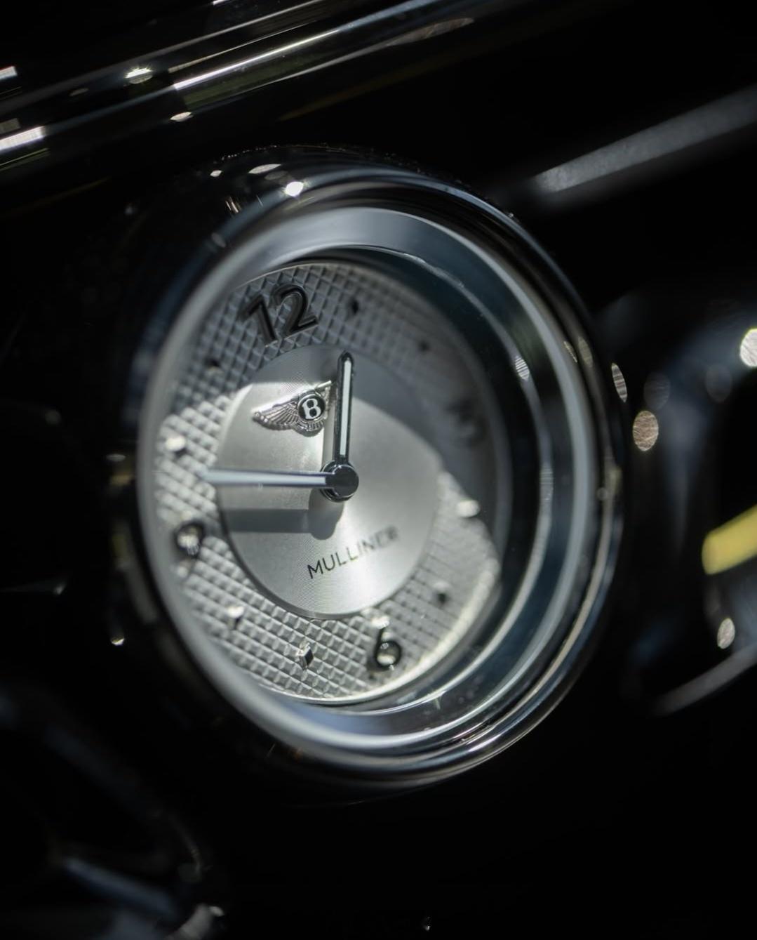 Mulliner版宾利飞驰的几个主要识别特点:双重钻石造型前格栅,车标永远垂直于地面的双色轮毂,翼子板上的Mulliner铭牌,钻石切割实木车门内饰板,当然还有中控台中央的百年灵×Mulliner时钟。