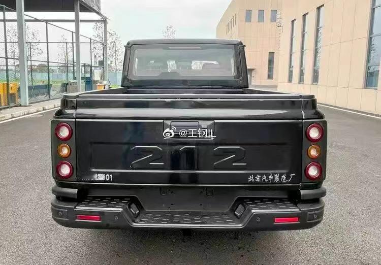 与当下主流的圆润化设计风格皮卡形成鲜明差异,这款基于 212 T01 车型衍生打造的皮卡,采用棱角分明的硬派造型设计,风格与牧马人皮卡高度契合。新车搭载非承载式车身结构,车身三围尺寸为 5469mm×1955mm×1970mm,轴距达 3488mm;货箱栏板内尺寸为 1555mm×1520mm×490mm,同时配备防滚架、货箱盖及牵引专用装置(含拖车钩方口座与电连接头)等实用配置。动力层面,新车搭载 2.3T 柴油发动机,其最大功率可达 140kW。
