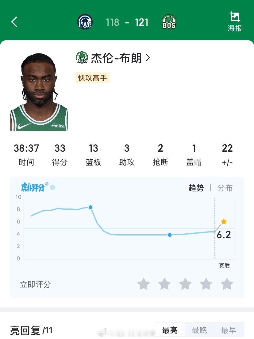 才发现,今天是联盟两大关系户对打字母哥哥略胜一筹。布朗尼赛季首次首发