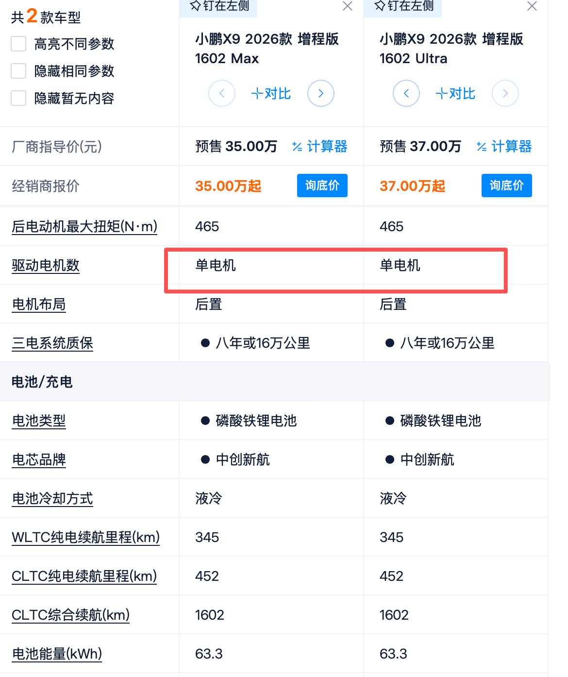 我现在才知道,小鹏X9 增程版,是一台单电机,百公里加速 8 秒但预售要价 35 个W的一台车......没有四驱的?我对小鹏产品不熟,没有别的意思,只是好奇一问