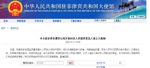 菲律宾方面宣布:中国在2025年11月11日向菲律宾提供约1.41亿比索的援助,