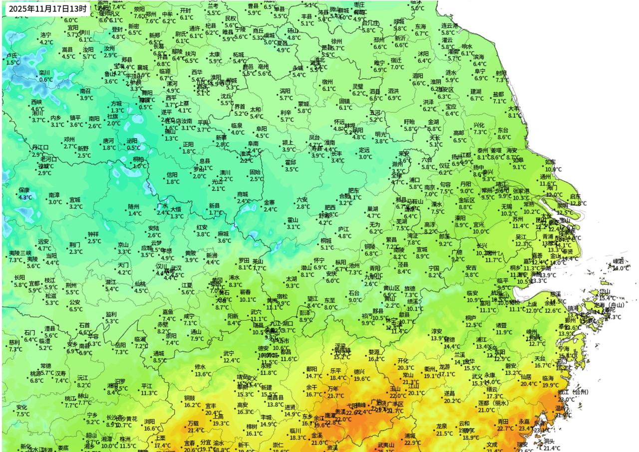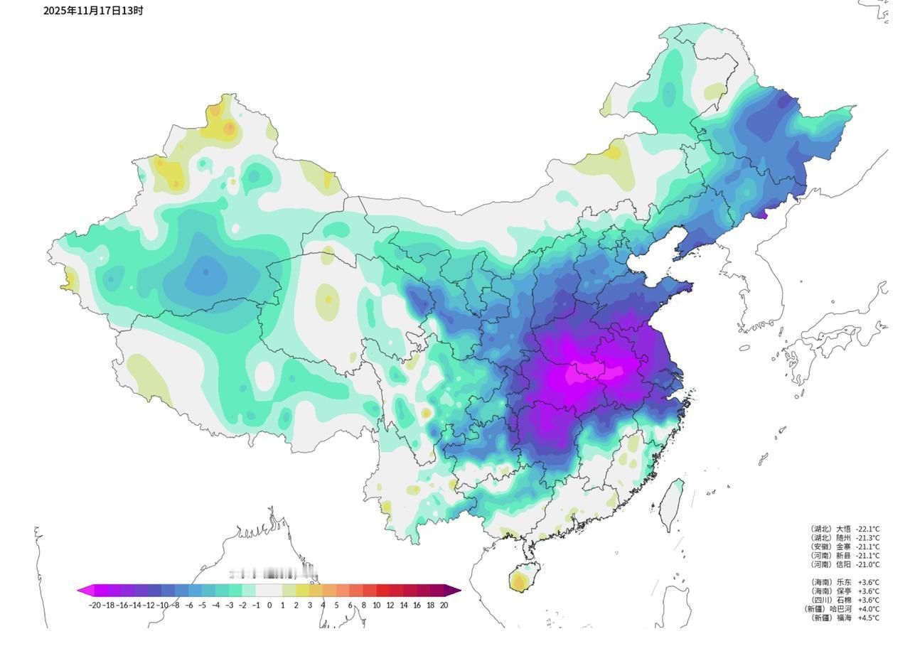 寒掠万里,零秋为雪 在气吞万里的强寒潮影响下,今天中东部大部出现了降温,尤其中原到长江中下游地区普遍比24小时前降温10℃以上;此外,陕西、河南、湖北西北部山区普遍迎来强降雪,甚至河南、湖北、安徽部分低海拔地区也飘零了第一片飞琼。 明后两天,寒潮带来的降温将进一步扩展到南海之滨;同时最低温0℃线将抵达长江中下游沿岸,而10℃线也将突破南岭、武夷山进入岭南、福建。虽然随后寒潮影响趋于结束,但早晚的低温仍将维持数日。请注意防范~