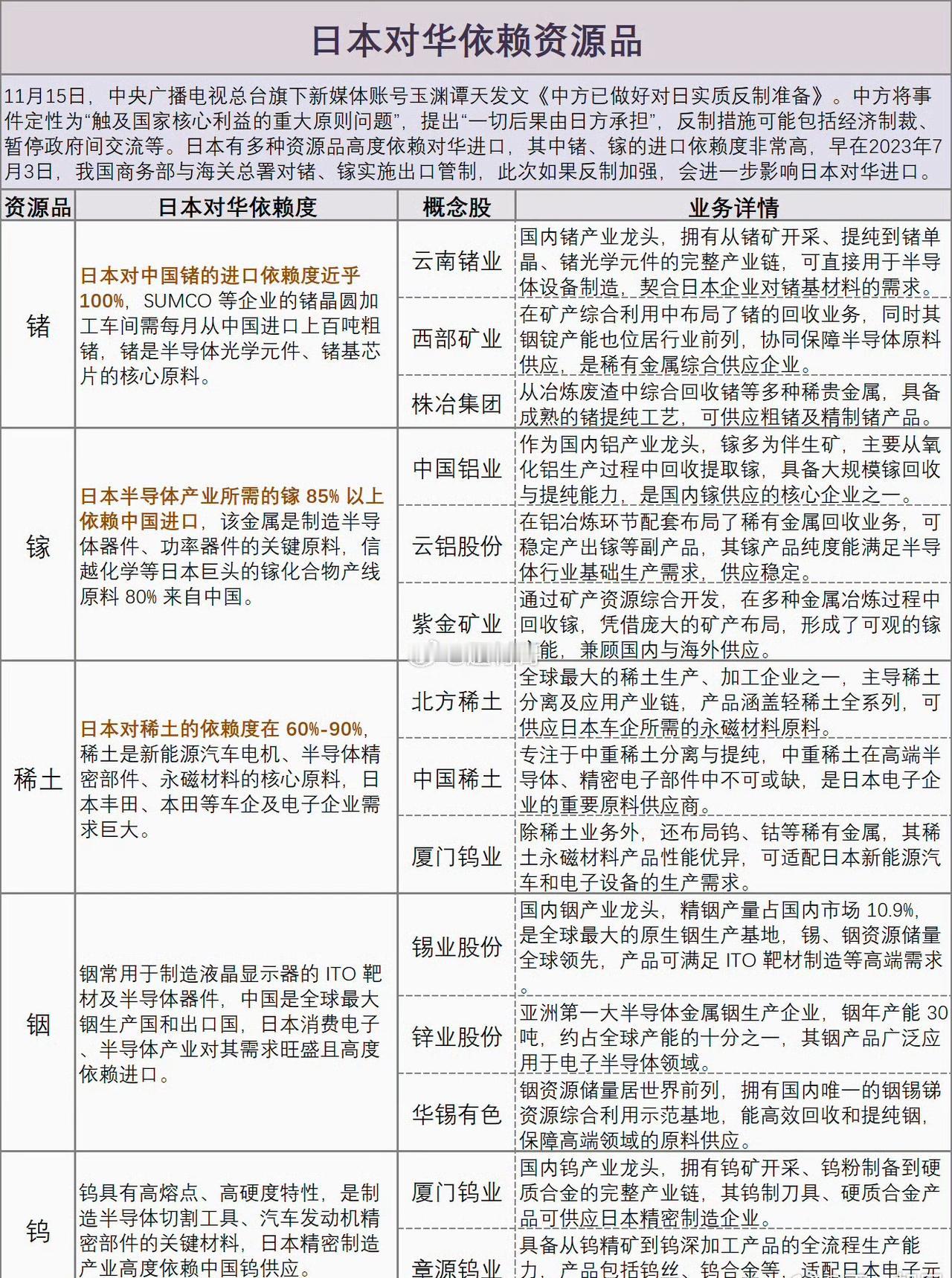 日本对华依赖资源品
