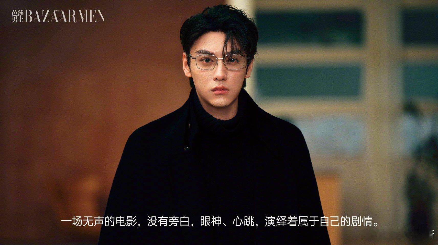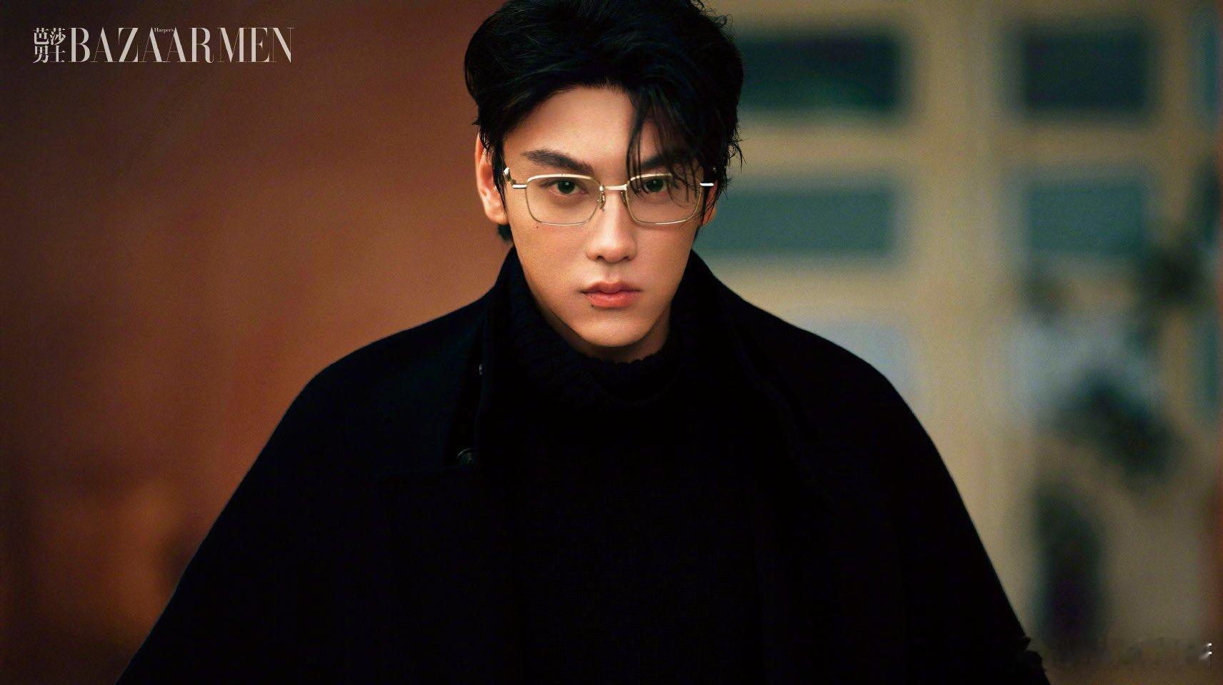 田栩宁黑色大衣,金色眼镜,简约中透出不凡气质,每一秒都在和回忆对抗。