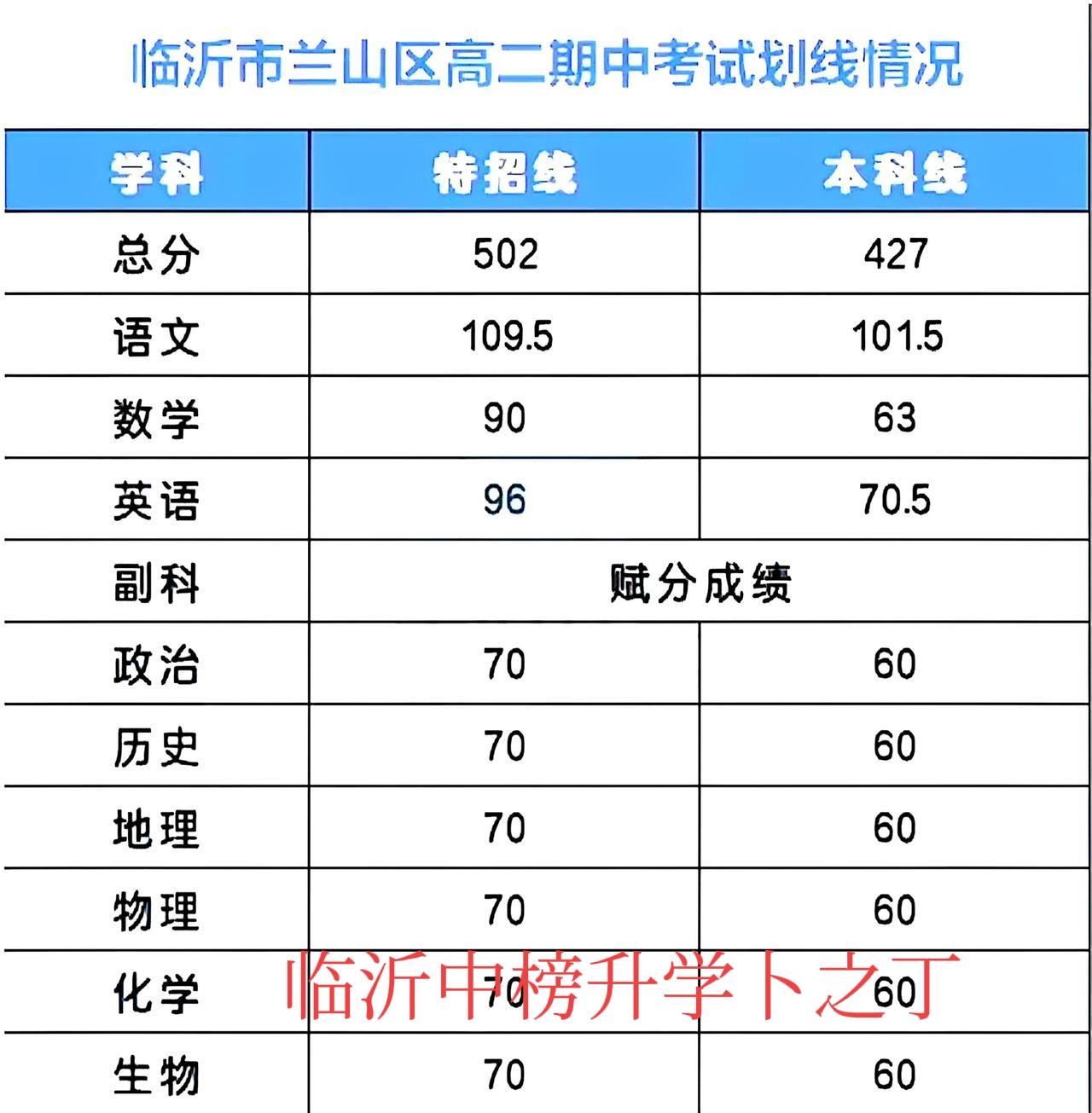 临沂兰山区高二家长注意,下图是这次期中考试的划线情况,本科线为427分,特效线为502分,以及各科划线。欢迎大家留言文明交流!