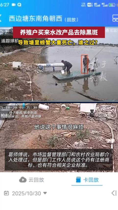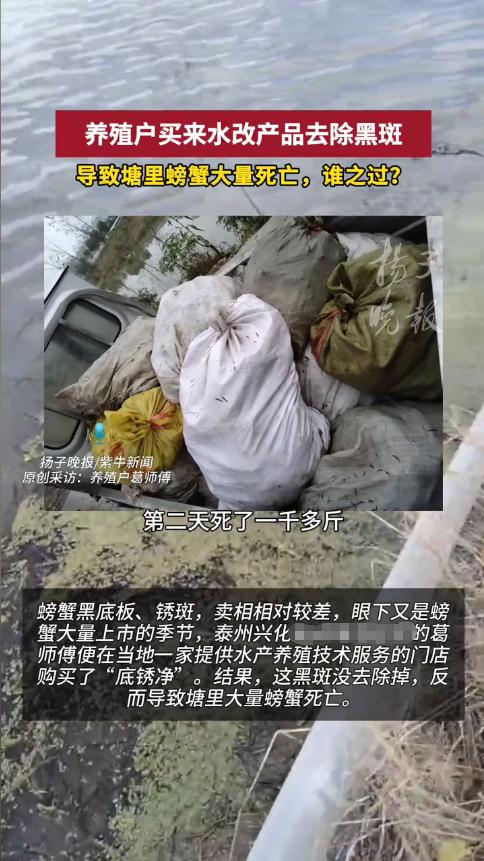“严查到底!”10月30日,江苏泰州,一男子为了去除螃蟹黑底板、锈斑,卖个好价钱,就买了2桶药倒入塘中,两天后,他又倒了2桶,结果螃蟹却开始大量死亡,损失接近20万元!男子找店家讨要说法,对方却表示产品没有问题。网友:拿去化验下就知道了! 葛师傅养螃蟹好些年了,今年的螃蟹长势不错,就是有个小问题,部分螃蟹的底板发黑、带着锈斑,这样的螃蟹拿到市场上,买主看着不舒心,价格自然卖不上去。他琢磨着怎么改善螃蟹的卖相,后来听人说有家叫“鱼状元”的店里,有种叫“底锈净”的药挺管用,专门能去除螃蟹的黑底板和锈斑,让螃蟹看起来更干净鲜亮,卖价能提一大截。 抱着能多赚点钱的心思,葛师傅就去店里买了几桶回来。 10月30号那天,葛师傅按照店家说的用法,往螃蟹塘里倒了2桶药,倒完之后还特意观察了几天,没发现什么异常,螃蟹还是正常活动、觅食,他心里还挺踏实,觉得这药确实靠谱。 可想着能让效果更明显些,11月2号的时候,他又往塘里补倒了2桶,总共四桶药全用在了这一个塘里,另一个相邻的螃蟹塘,他没敢轻易尝试,就没用药。 哪知道这次补药之后,麻烦紧跟着就来了。 11月5号一大早,葛师傅像往常一样去塘边查看,远远就看见水面上飘着十几只死螃蟹,当时他心里咯噔一下,赶紧划船过去捞,心里还存着侥幸,觉得可能是个别螃蟹生病,不算大事。可到了下午,死螃蟹的数量一下子多了起来,捞上来足足有几十斤,塘里的螃蟹也变得蔫蔫的,不像平时那么活跃了。 更让他崩溃的是第二天,一睁眼跑到塘边,水面上密密麻麻飘着一层死螃蟹,粗略一算得有上千斤,之前活力满满的一塘螃蟹,一夜之间就成了这副模样。 接下来的几天,螃蟹还在不断死亡,最后算下来,接近二十万的螃蟹几乎死绝了,葛师傅看着空荡荡的池塘,心疼得直掉眼泪,这可是他忙活一整年的血汗钱。 他思来想去,自己养殖的方法和往年一样,水质、饲料也都没换过,唯一的变化就是给这个塘倒了那四桶“底锈净”,而旁边没用药的塘,螃蟹活得好好的,一点事都没有。在他看来,这就是最直接的证据,肯定是这药有问题,才把螃蟹给毒死了。 气不过的葛师傅拿着空药桶,找到卖药的店家何师傅讨要说法,要求对方赔偿自己的损失。可店家那边的态度很坚决,说自己卖的这款湖北产的“底锈净”,已经卖了十多年了,口碑一直很好,附近不少养殖户都用过,近期其他客户用了也没出现螃蟹死亡的情况,根本不可能是产品的问题。 何师傅还猜测,可能是那段时间天气不好,经常起雾导致池塘缺氧,才让螃蟹大批量死亡,跟自己的药没关系。 双方各说各的理,争执不下,葛师傅没办法,只能报警,同时向市场监管部门和农业部门反映了情况。相关部门很快就派人来了,对现场进行了勘查,还调取了这款“底锈净”的相关手续,结果发现产品有注册商标,各项手续齐全,也符合企业自己的生产标准,从初步调查来看,没法直接认定产品有质量问题。 这一下就陷入了僵局:葛师傅这边是实实在在的巨大损失,眼睁睁看着螃蟹死光,心里又急又痛;店家那边拿着齐全的手续,坚称产品没问题,不肯赔偿。事情传到网上后,网友们也议论纷纷,大部分人都觉得“拿去化验下就知道了”,建议把剩余的药、塘里的水样还有死螃蟹都送去专业机构检测,用科学数据说话,到底是不是药的问题,一查便知。 其实店家也同意送检,还表示可以把封存的样品拿去专业机构检测,甚至愿意找十个塘口做对比实验,只要最后证实是产品的问题,愿意全额赔偿葛师傅的损失。南京的螃蟹专家和当地镇政府也觉得,当务之急是先把螃蟹的死因搞清楚,这样才能解决后续的纠纷。 可葛师傅心里还是犯嘀咕,不是不信科学,而是怕检测这条路不好走。 他一个普通养殖户,不懂那些复杂的检测流程,首先检测费就得不少钱,这笔钱该谁出?就算检测出药里有某种成分,又怎么证明就是这种成分直接导致了螃蟹死亡?这种专业的因果关系认定,对他来说太难了,心里实在没底。 好在当地镇政府已经表态,会协调跟进此事,帮忙对接检测机构,处理后续的纠纷。现在大家都在等着检测结果,希望能早日查明真相。葛师傅的遭遇也让不少养殖户感同身受,农业生产里,养殖户们往往靠着经验和一些农资产品提高产量、改善品质,可一旦遇到这种“产品手续齐全,却造成实际损失”的情况,维权之路就格外艰难。 这起死蟹事件,不光关系到葛师傅一年的血汗钱能不能挽回,更让人思考,在越来越精细的农业生产中,该怎么让养殖户的实际遭遇和科学检测、产品标准更好地对接起来,让普通农民在遇到类似纠纷时,能有更顺畅的维权渠道,不用再为“怎么证明是产品的问题”而犯愁。希望这次的检测能有明确结果,给葛师傅一个公道,也给其他养殖户一个安心。 信息来源:《买底锈净除斑反致螃蟹死亡损失20万》扬子晚报