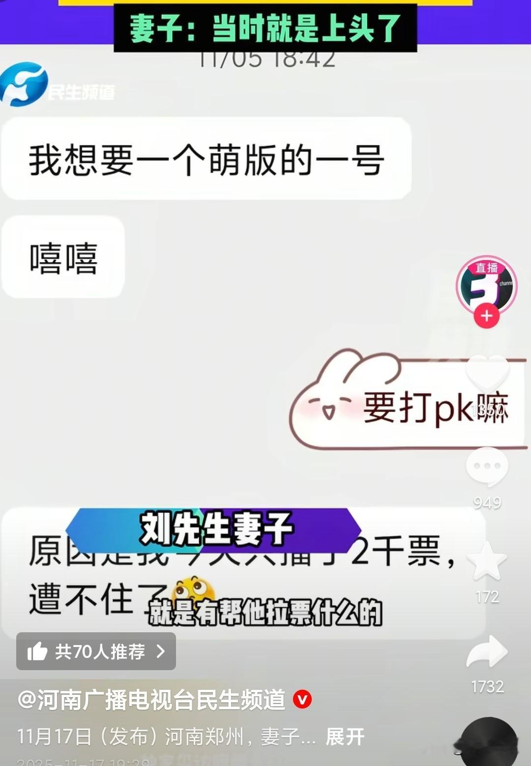 原来8年之痒是真的, 丈夫挣的是辛苦钱,妻子在家挥霍116万存款,为了撑场面豪掷67万,打赏男主播。 据她丈夫所说她平时不怎么花钱,很节省,结婚8年,把自己挣到的所有钱都交给她,现在116万的存款都没了,其中67万打赏给了男主播。 在丈夫的询问下,她也不肯说出其他钱的下落,到底用在哪个地方,她就没有为自己的小家庭的将来着想,挣的是辛苦钱,自己存了半辈子的钱没了,还欠了8块钱网贷,孩子的学费、生活费都是一个问题。 这两口子是分居两地,妻子住在买的房子里面照顾小孩子,不用她工作,而丈夫在外工作,租的是300块钱的房子,漏风又漏雨,想给她更好的生活,完完全全把自己的后背交给她,没想到她把所有的钱都花完了,其中67万打赏给了男主播,其他钱目前还不知道花在哪个地方。 妻子则在哭诉,是自己太上头了,对方一直宝宝宝宝的叫,说什么是要完成平台任务,要求帮她刷票,都是虚荣心在作祟。 现在不是责备她的时候,赶紧联系男主播,跟他说明情况,妻子在丈夫不知情的情况下,用夫妻共同财产打赏男主播,金额巨大,违背公序良俗,可以要求返还一部分打赏。 其他的钱只能去银行调取转账记录,看是用在哪方面的,能追回就尽量追回。