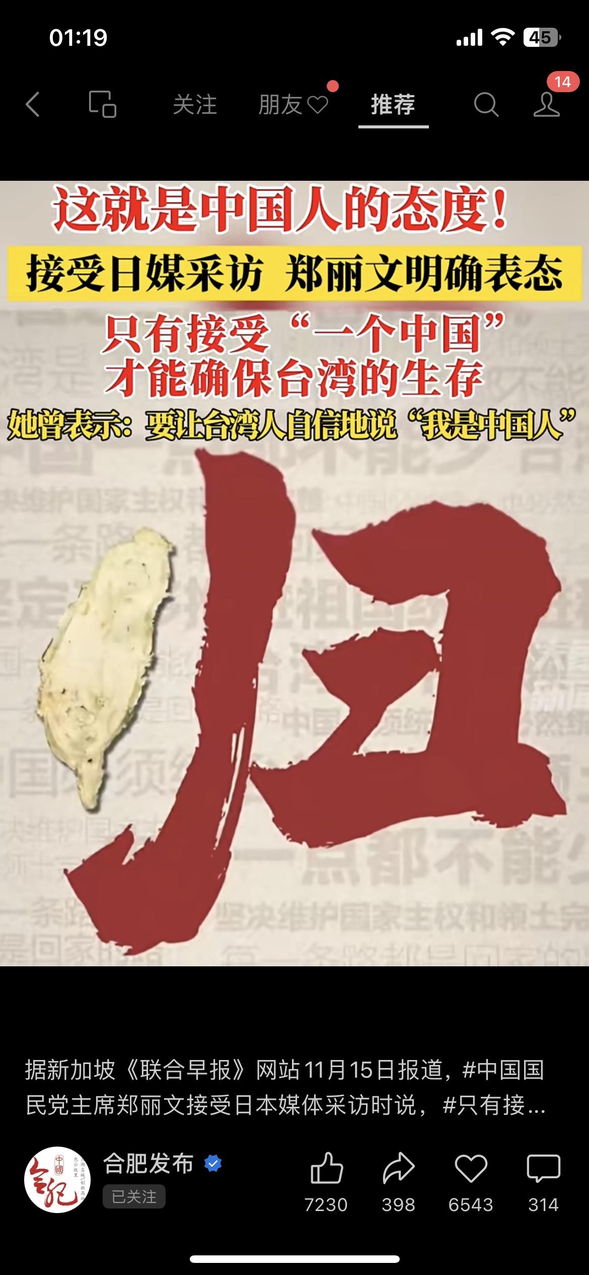 刚刷到郑丽文接受日媒采访的话,这嘴是真硬气啊! 直接对着日媒说:“别绕弯子,只有认‘一个中国’,台湾才能好好活下去!” 还说要让台湾人敢大大方方说“我是中国人”——这才是真的拎得清啊!现在有的势力还在那装糊涂,这种不藏着掖着的表态,看着就舒服! 你们觉得这波表态够不够刚?郑丽文访大陆 郑丽文访大陆