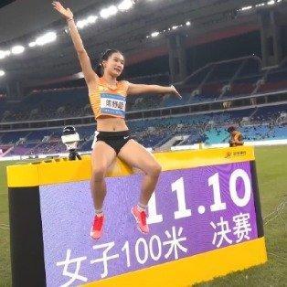 女子100米决赛,16岁的陈妤颉以11秒10的成绩,打破亚洲青年纪录夺冠
