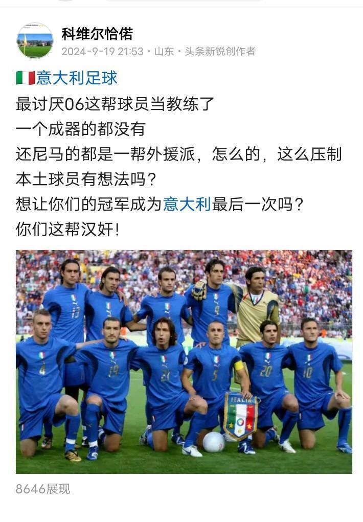 🇮🇹 格罗索你还要点脸吗 沃尔帕托,利帕尼在你手下当着饮水机看守员,你还有脸说重用年轻人! 恶心的06一代