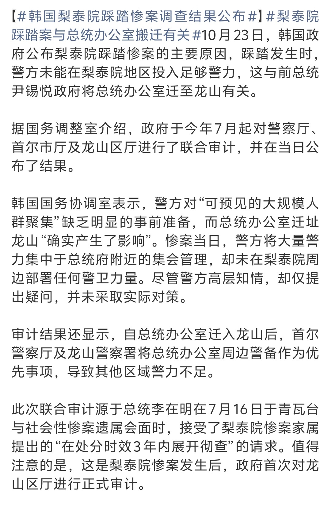 韩国梨泰院踩踏惨案调查结果公布 三年前的惨案,这锅又丢给了尹卡卡了[揣手]